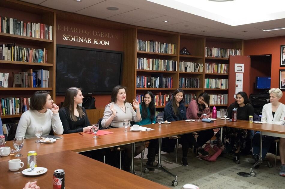 Forsetafrú á fundi með nemendum við Harvard háskóla. Á fyrri fundinum sat hún fyrir svörum og ræddi við nemendur í Women in Public Policy námsbrautinni, Oval Office námsbrautinni og þátttakendum í Arctic Inititative verkefninu. Á síðari fundinum ræddi Eliza við nemendur í námskeiði um forystuhlutverk kvenna um hlutverk og stöðu Íslands á sviði kynjajafnréttis, um þá stefnu að jafna laun kynjanna á Íslandi og um ný verkefni á sviði kynjajafnréttis í landinu, meðal annars í ljósi #MeToo hreyfingarinnar.
