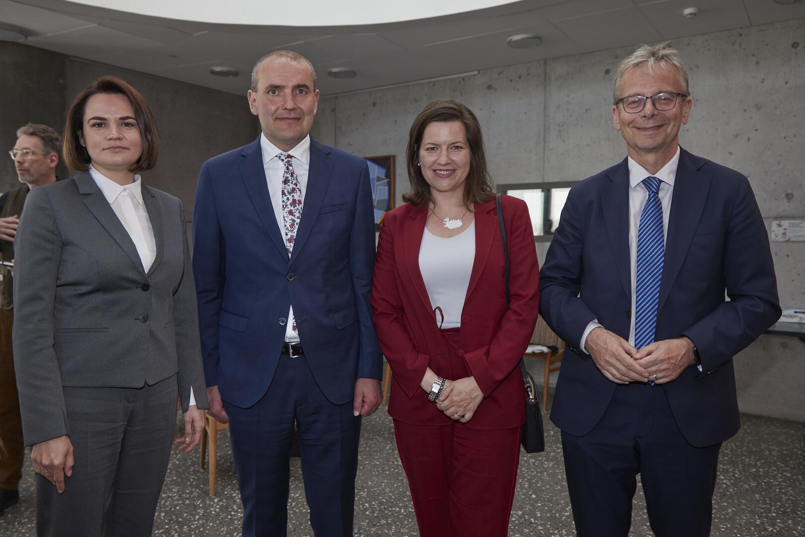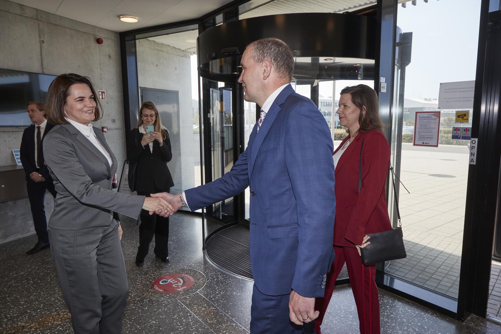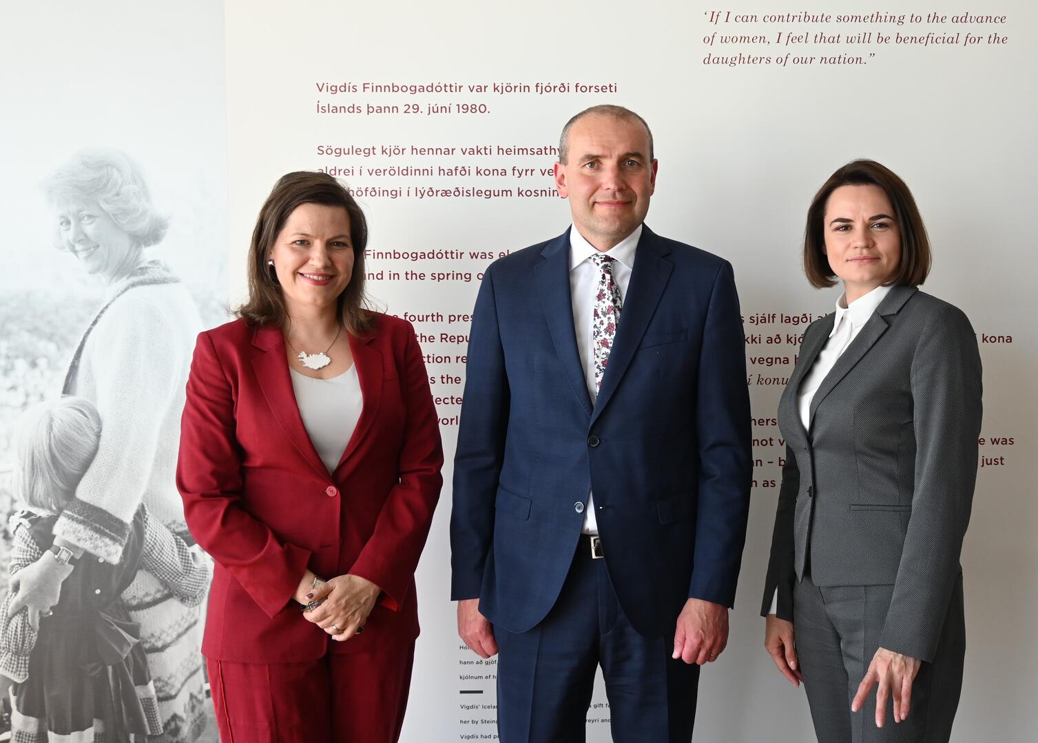 Forseti og forsetafrú sækja fyrirlestur Sviatlönu Tsikhanouskayu í Veröld í Reykjavík. Erindið nefndist Leiðin til lýðræðis og rakti Tsikhanouskaya sögu andófs og baráttu fyrir lýðræði í Belarús. Eiginmaður hennar situr í fangelsi þar og hún þurfti að flýja land með börnum þeirra, eftir forsetakosningar sem hún tók þátt í en niðurstöður voru ekki virtar. Íslensk stjórnvöld styðja kröfur um nýjar og frjálsar kosningar í Belarús, hvetja til þess að pólitískum föngum þar verði sleppt og látið verði af kúgun og ofbeldi í garð þeirra sem styðja ekki núverandi stjórnvöld.