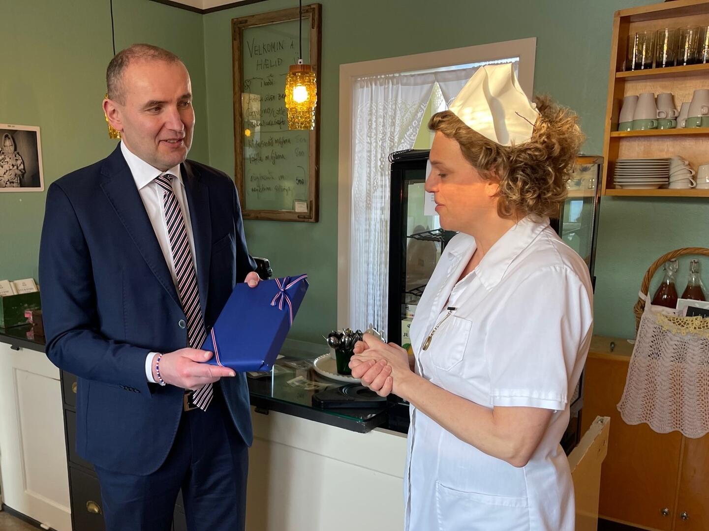 Forseti sækir viðburði og á fundi á Norðurlandi. Á laugardag hitti hann fyrst húsráðendur á Stóru-Ökrum 1 í Skagafirði, Gunnar Sigurðsson og Svanhildi Pálsdóttur, ásamt Hrefnu Jóhannesdóttur, oddvita Akrahrepps, og Sigfúsi Inga Sigfússyni, sveitarstjóra í Skagafirði. Haustið 2020 þurfti að skera allt fé niður þar vegna riðu, eins og víðar í firðinum.