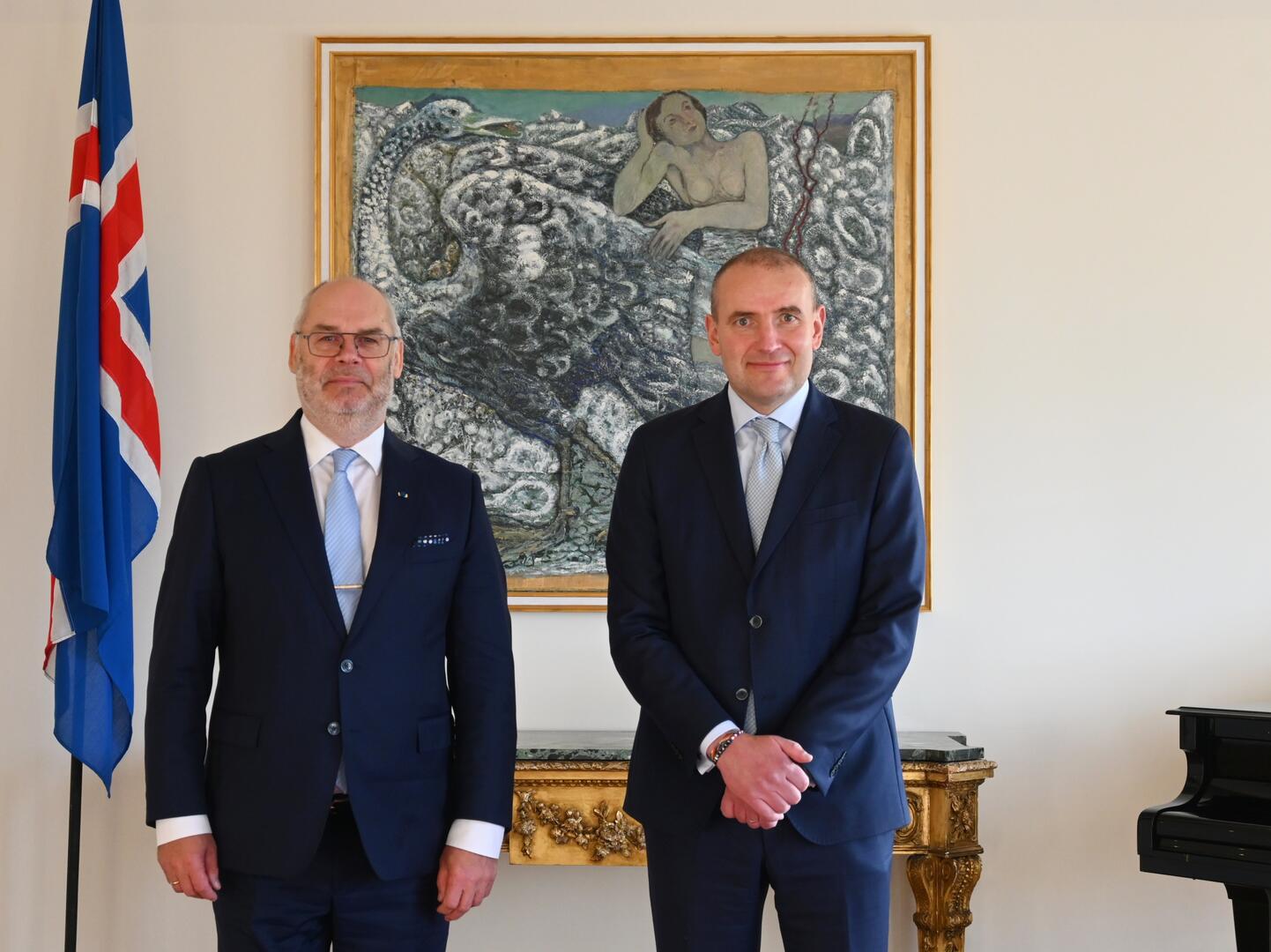 Forseti tekur á móti Alar Karis, forseta Eistlands. Rætt var um samstarf Íslands og Eistlands, ekki síst á sviði Norðurslóða og umsókn Eistlands um stöðu áheyrnaraðila í Norðurskautsráðinu, sem íslensk stjórnvöld styðja. Þá var rætt um stuðning beggja ríkja við Úkraínu. Fundinn sátu einnig Lauri Bambus, sendiherra Eistlands gagnvart Íslandi, og Harald Aspelund, sendiherra Íslands gagnvart Eistlandi.