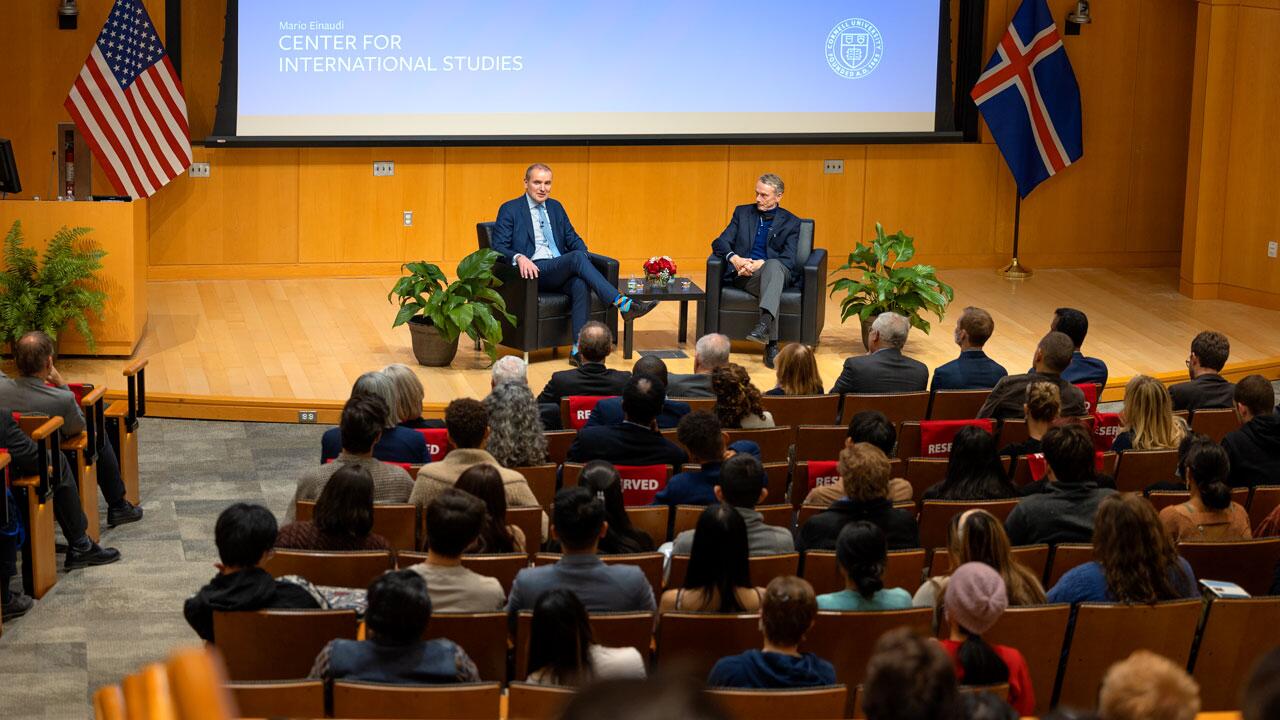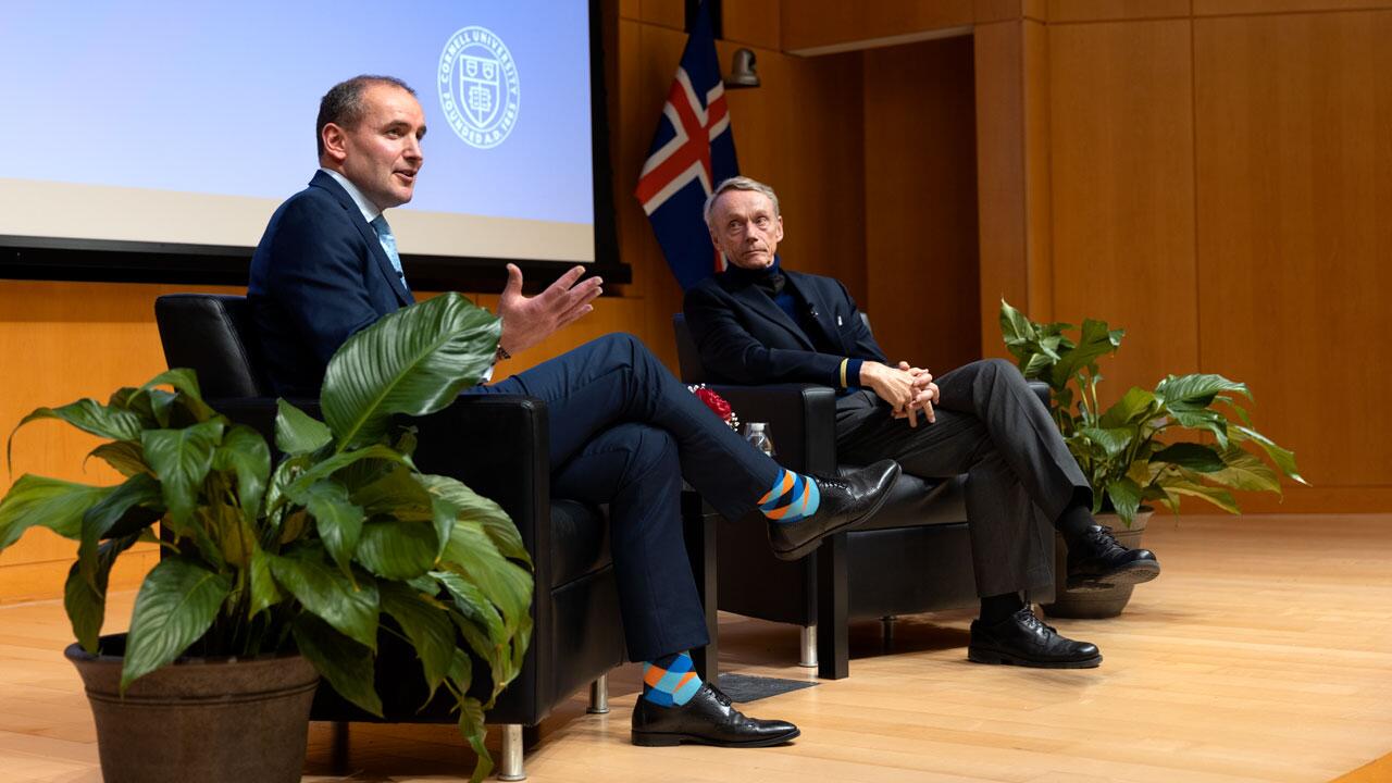 Forseti heimsótti í dag Cornell háskóla í norðanverðu New York fylki og flutti þar fyrirlestur um Ísland í ljósi alþjóðatengsla, ímynd Íslands, þjóðernishyggju og fleira og svaraði að því búnu fyrirspurnum frá kennurum og nemendum við skólann. Viðburðinum var streymt á vef Cornell og má sjá upptökuna hér.
