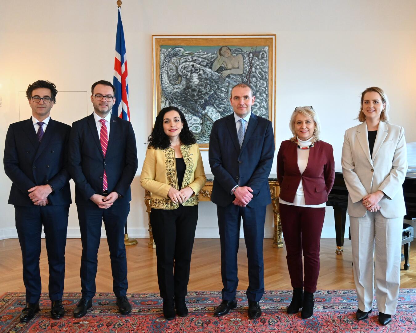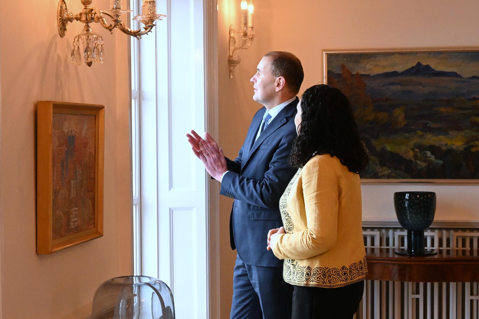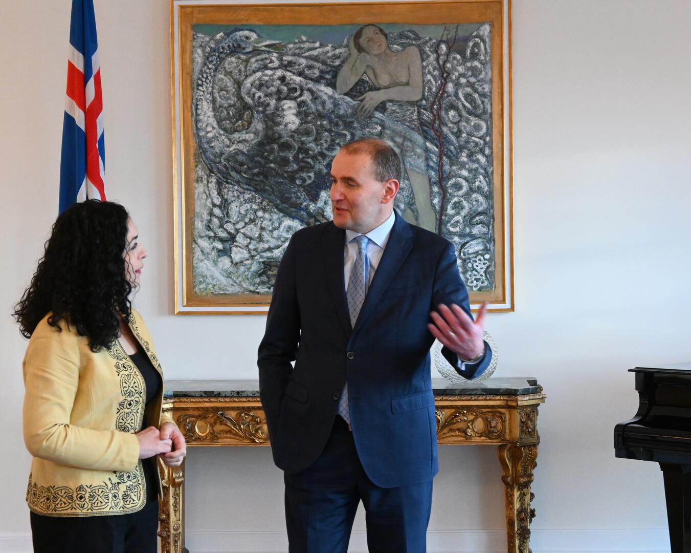 Forseti fundar með Vjosa Osmani, forseta Kósovó. Ísland var meðal fyrstu ríkja til að viðurkenna sjálfstæði Kósovó árið 2008 en þetta er í fyrsta sinn sem forseti landsins sækir Ísland heim. Rætt var um umsókn Kósovó að Evrópuráðinu og stuðning Íslands við uppbyggingu í Kósovó gegnum tíðina, ekki síst á sviði flugsamganga og loftrýmisgæslu á vegum Atlantshafsbandalagsins. Þá var rætt um stöðu mála á Balkanskaga og mikilvægi samstöðu Evrópuríkja gegn innrás Rússa í Úkraínu. Fyrr um daginn fundaði Osmani með Þórdísi Kolbrúnu Reykfjörð Gylfadóttur utanríkisráðherra, Katrínu Jakobsdóttur forsætisráðherra og Birgi Ármannssyni, forseta Alþingis.