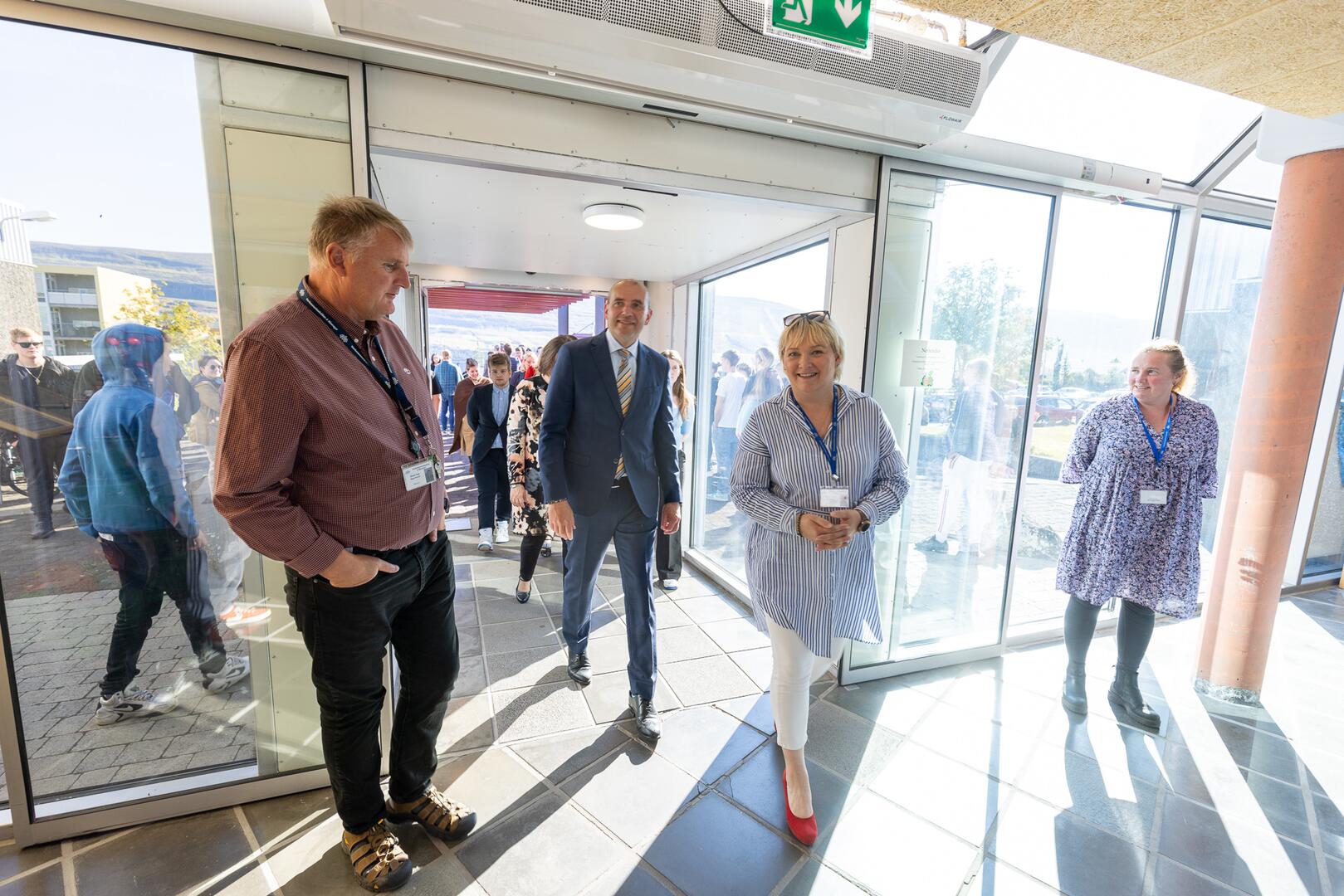 Í hádeginu heimsóttu þau hjúkrunar- og dvalarheimilið Hlíð og ræddu þar við starfsfólk og dvalargesti og þáðu hádegisverð í matsal. Þá komu þau við á Iðnaðarsafninu en þar má sjá hve sterk Akureyri var á sviði margs konar iðnaðar á liðinni öld.