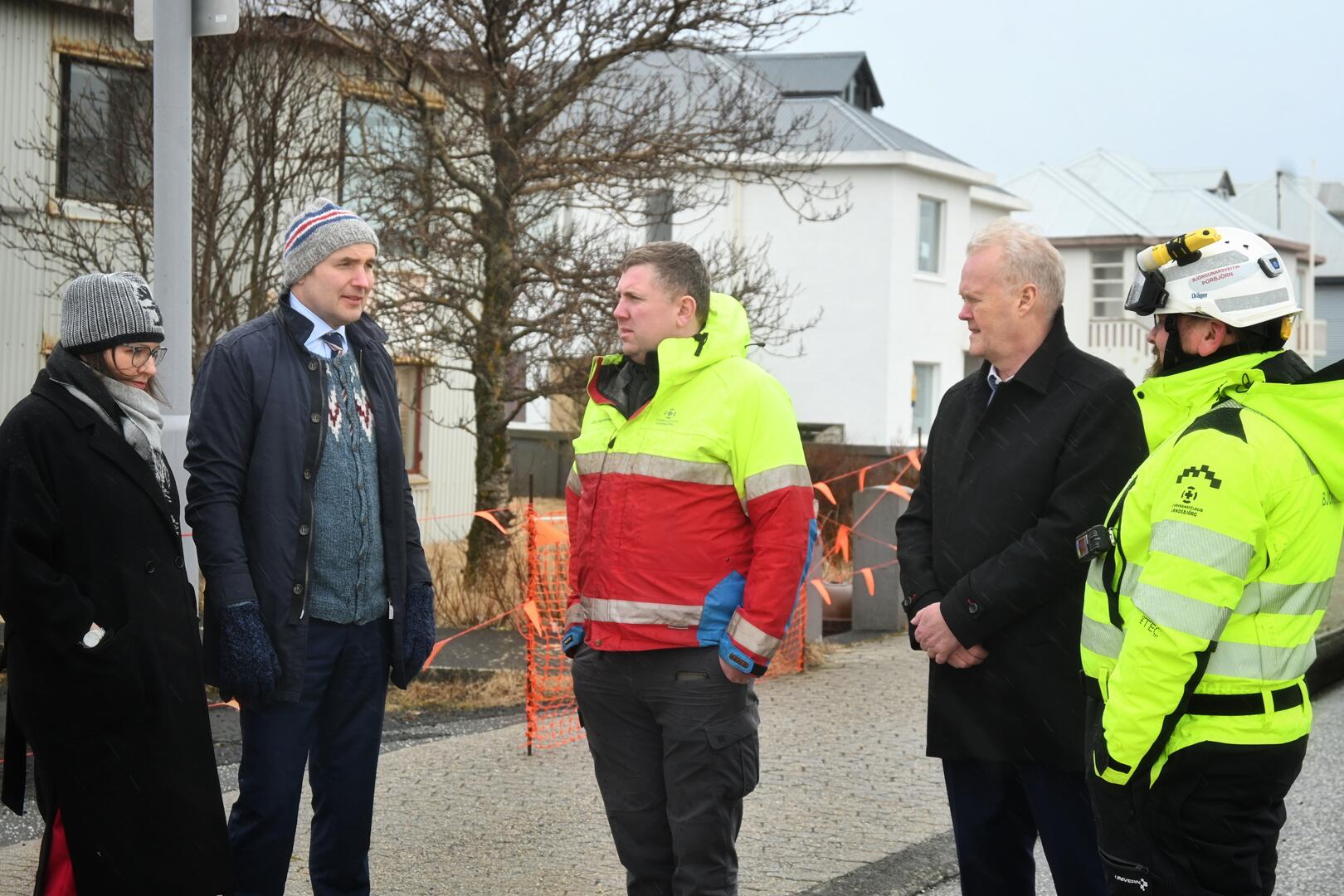 • Forsetahjón kynna sér áhrif eldsumbrotanna á innviði Grindavíkurbæjar, í fylgd Fannars Jónassonar bæjarstjóra og Otta Rafns Sigmarsosnar björgunarsveitarmanns.