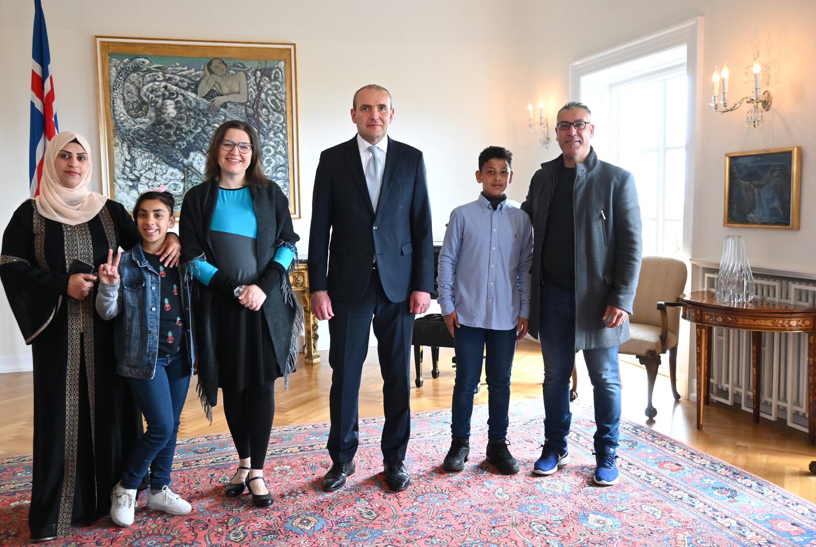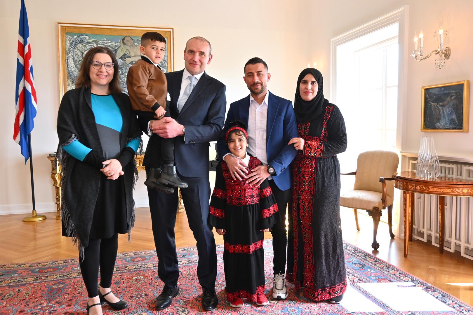 Forsetahjón taka á móti fjölskyldum frá Palestínu sem fengið hafa dvalarleyfi og skjól á Íslandi á grundvelli ákvæða um fjölskyldusameiningar. Forseti og forsetafrú lýstu þeirri von að þessir íbúar landsins fengju sömu tækifæri og aðrir til þess að láta gott af sér leiða, til heilla fyrir sig sjálf og samfélagið allt. Einnig minntu þau á máttarstólpa samfélagsgerðarinnar hér, ekki síst málfrelsi, trúfrelsi og mannréttindi, samhjálp og samkennd.