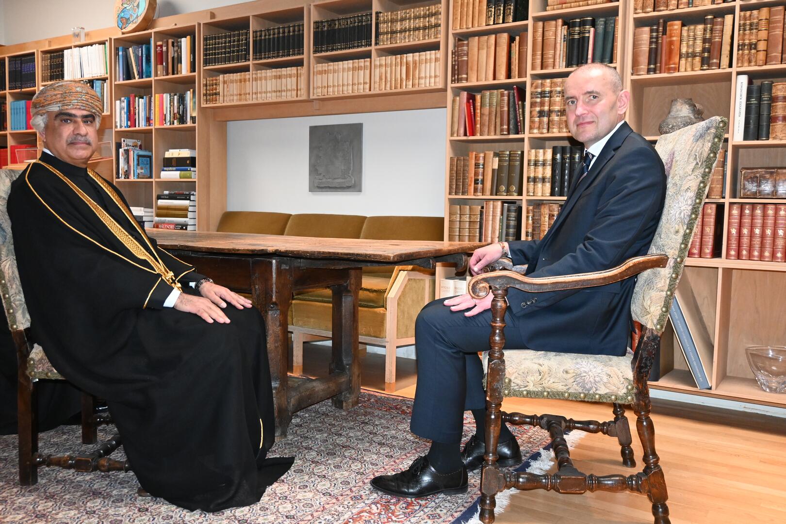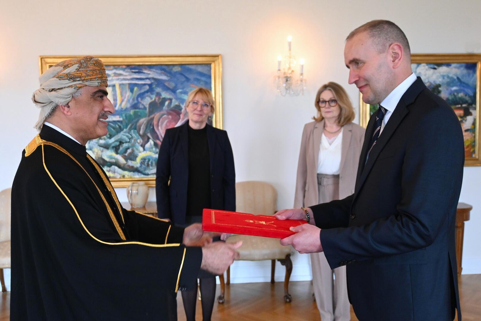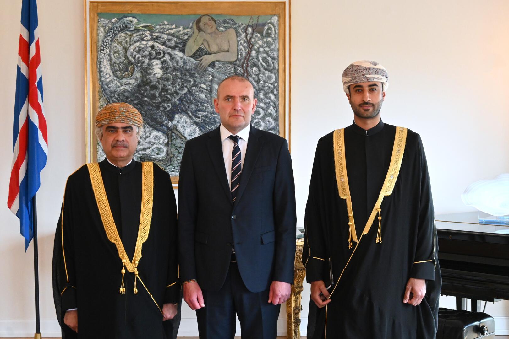 Forseti tekur á móti nýjum sendiherra Ómans, Bader Mohammed Bader Al Mantheri, sem afhendir trúnaðarbréf sitt á Bessastöðum. Forseti rakti sjónarmið Íslands á alþjóðavettvangi, áherslu á mannréttindi, virðingu fyrir alþjóðalögum, samstöðu í umhverfismálum og nýtingu grænnar orku. Þá var rætt um leiðir til að efla samskipti ríkjanna á ýmsum sviðum, ekki síst í sjávarútvegi. Loks rakti sendiherra sjónarmið Ómans í átökunum fyrir botni Miðjarðarhafs.