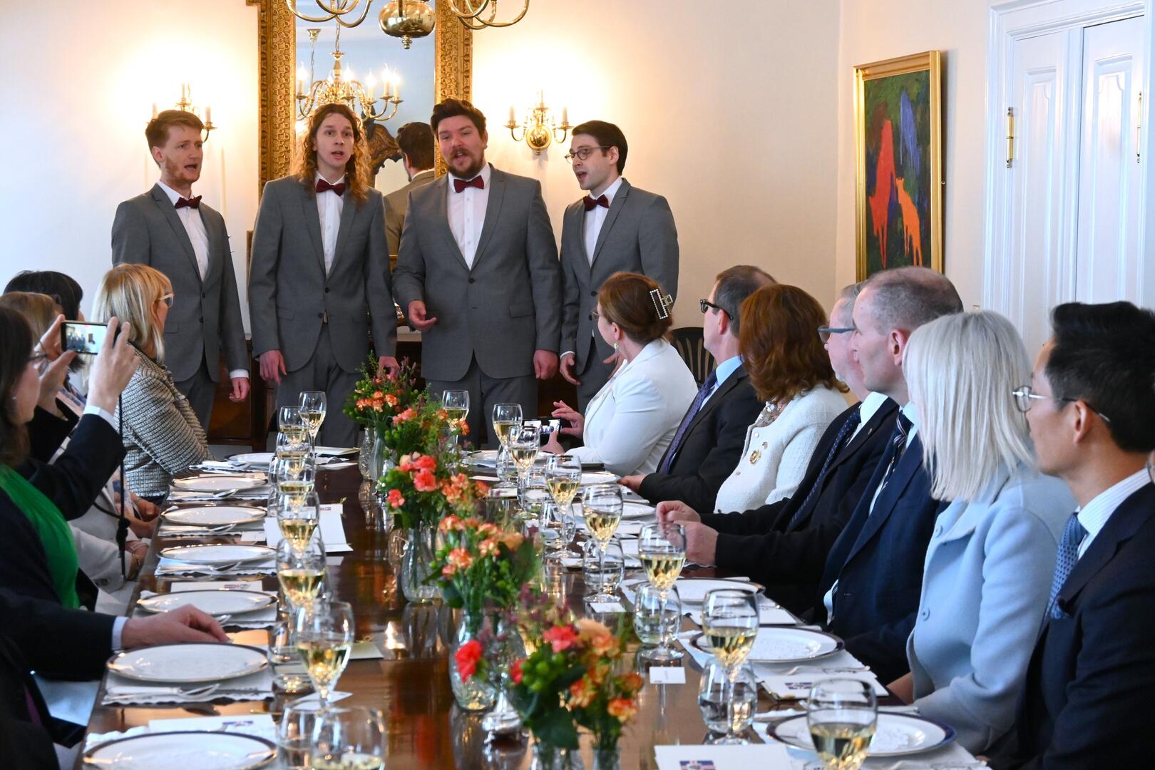 Forsetahjón bjóða sendiherrum erlendra ríkja á Íslandi til hádegisverðar á Bessastöðum. Forseti þakkaði góð kynni á undanförnum árum og Pólverjinn Gerard Pokruszyński, sem hefur lengst gegnt embætti sendiherra á Íslandi í hópi gestanna, færði forsetahjónum þakkir fyrir hönd hópsins. Einnig var rætt um stöðu Íslands í samfélagi þjóðanna, völd og verksvið þjóðhöfðingja á Íslandi og væntanlegt forsetakjör. Söngflokkurinn Barbari kvartett flutti tónlistaratriði.