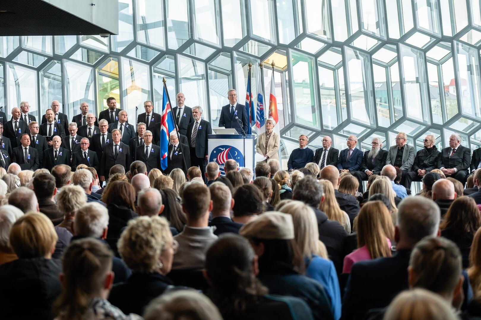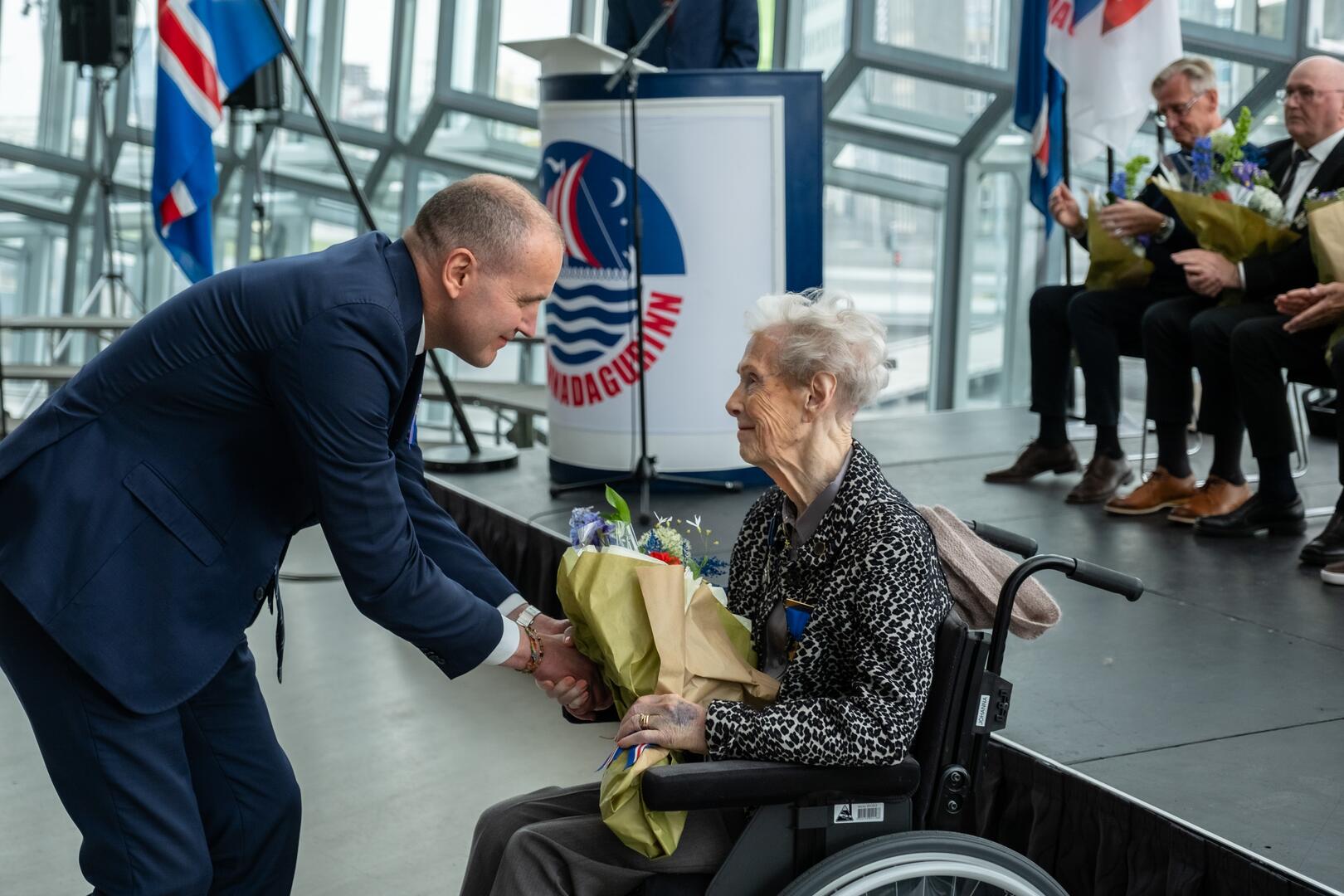 Síðdegis sótti forseti hátíðarathöfn sjómannadagsráðs í Hörpu, þar sem sjómenn voru heiðraðir. Sjómannadagsráð sæmdi þar forseta heiðursmerki sjómannadagsins og afhenti honum afsteypu af styttunni Horft til hafs eftir Inga Þ. Gíslason.