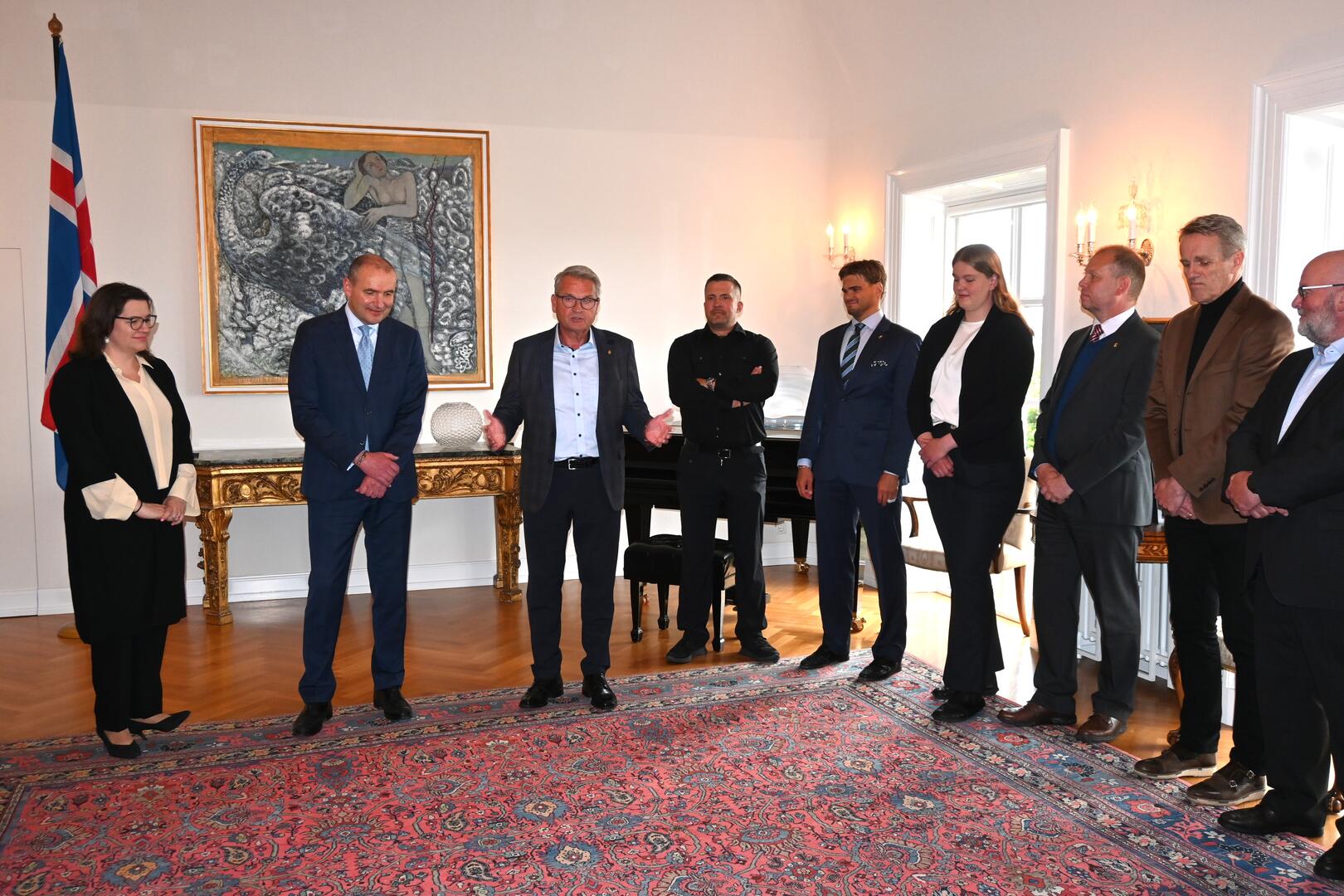 Forsetahjón óskuðu Ólympíuförunum velfarnaðar áður en hópurinn heldur til Frakklands, en Ólympíuleikarnir verða settir í París þann 26. júlí. Þá kynnti Lárus Blöndal, forseti ÍSÍ, fánabera Íslands á setningarhátíð Ólympíuleikanna.