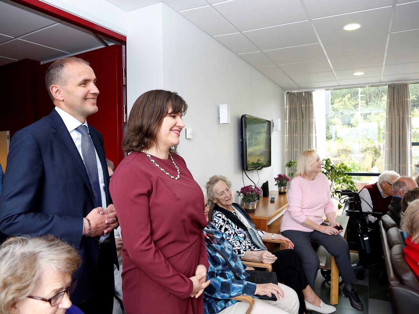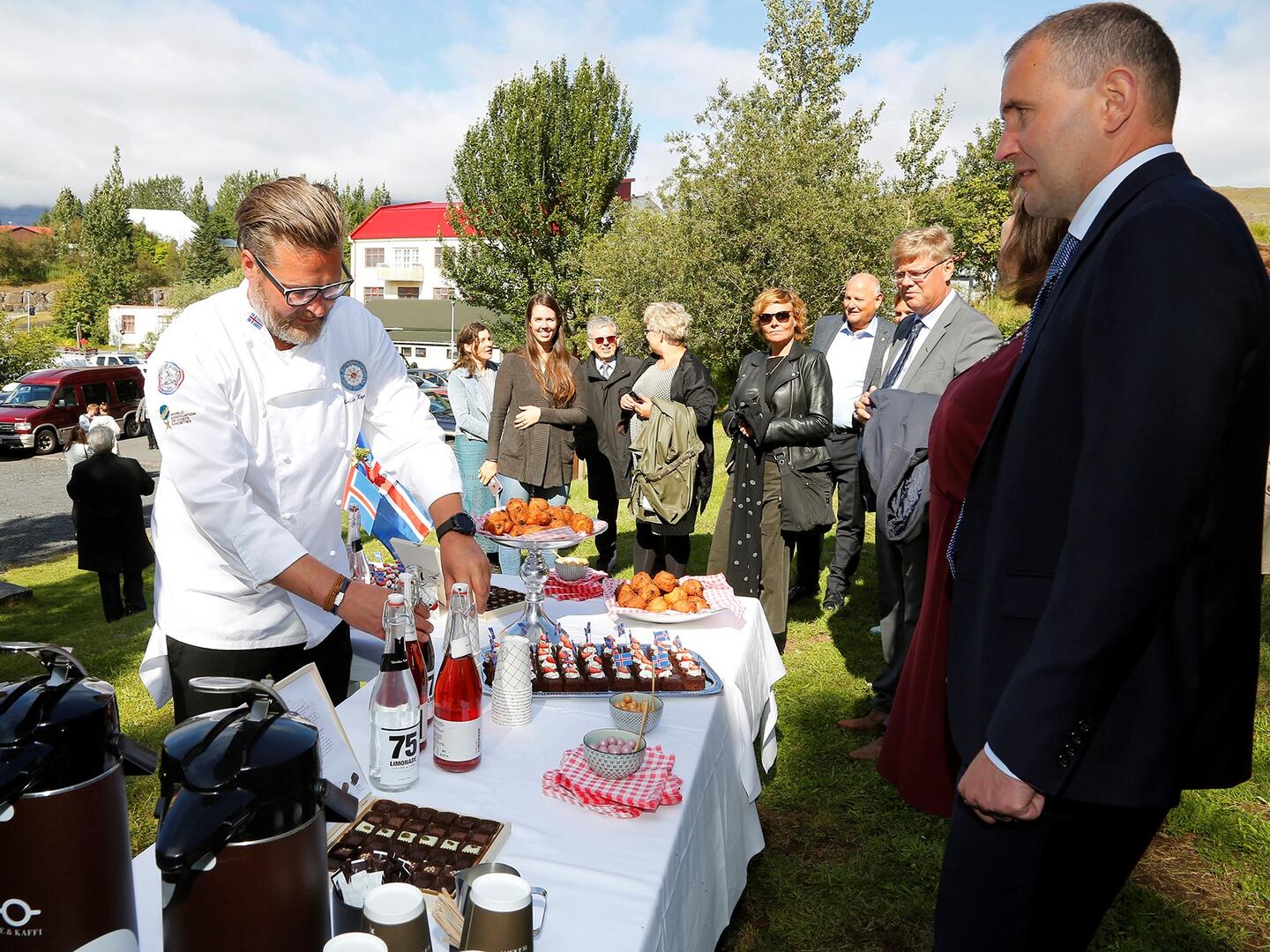 Guðný Dóra Gestsdóttir ávarpar forsetahjón á Gljúfrasteini, Húsi skáldsins.