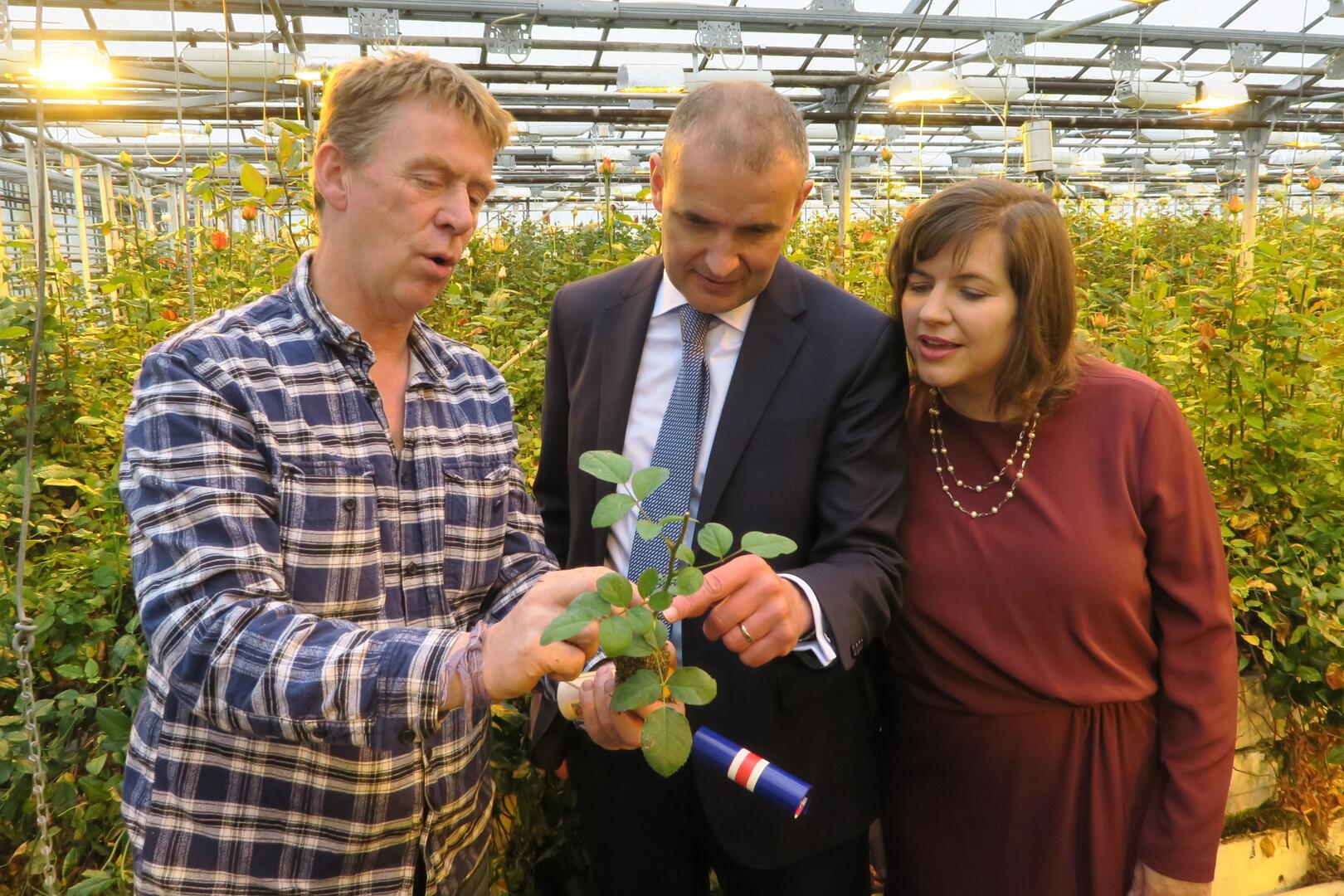 Gísli Jóhannsson, garðyrkjubóndi í Dalsgarði, útskýrir lífrænar skordýravarnir sem nýttar eru við rósaræktina.