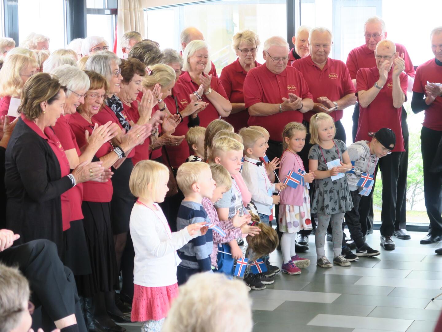 Kór eldri borgara með liðstyrk frá yngri borgurum.