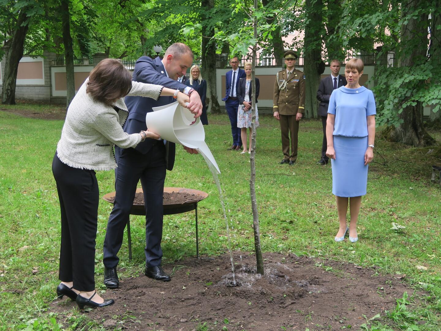 Tré góðursett við forsetahöllina í Tallinn sem tákn um vináttu þjóðanna.