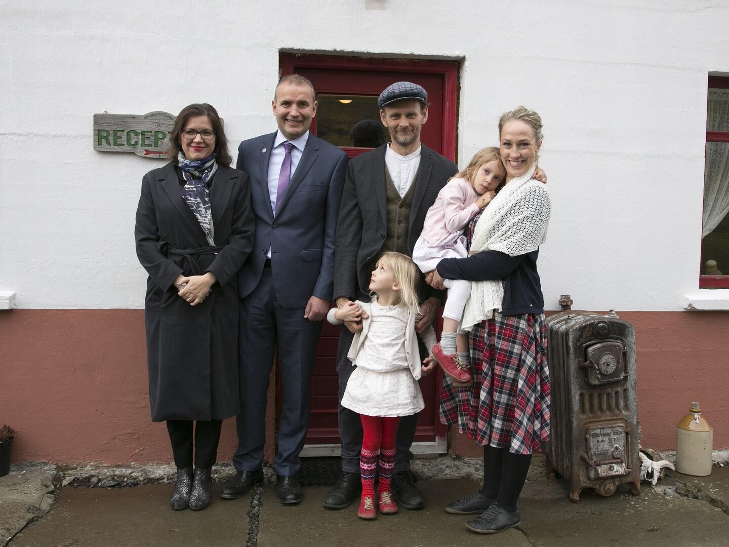 Forsetahjón kveðja húsráðendur í Óbyggðasetrinu, þau Örnu Björg Bjarnadóttur og Steingrím Karlsson og dætur þeirra tvær.