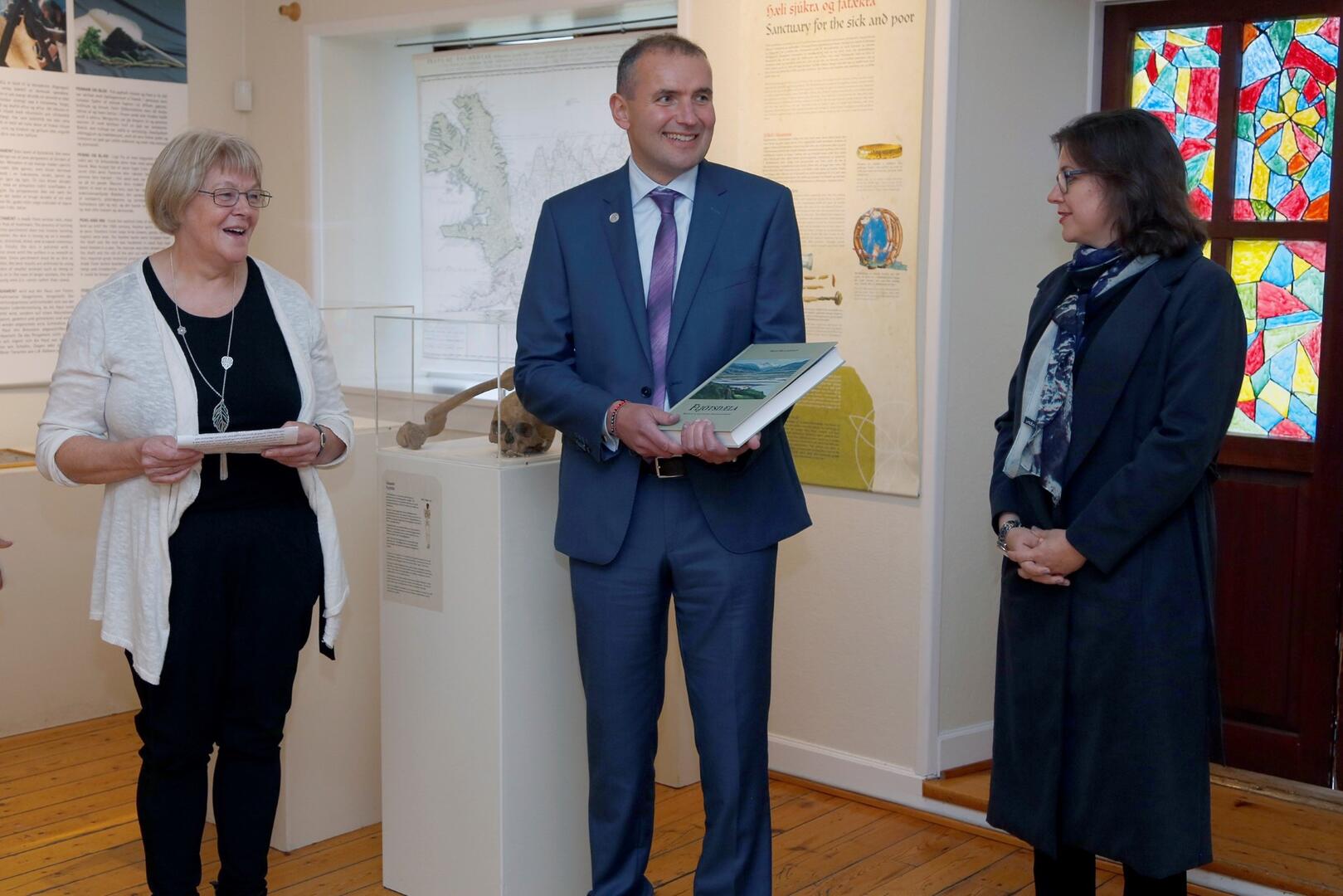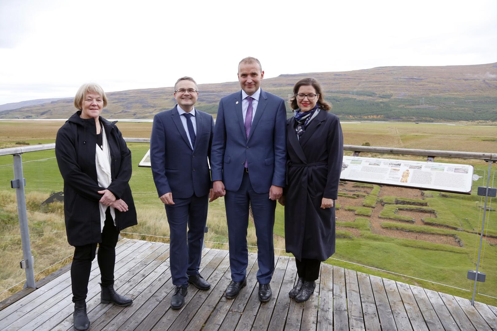 Forsetahjón ásamt Gunnþórunni Ingólfsdóttur, oddvita Fljótsdalshrepps, og Skúla Birni Gunnarssyni, forstöðumanni Gunnarsstofnunar.