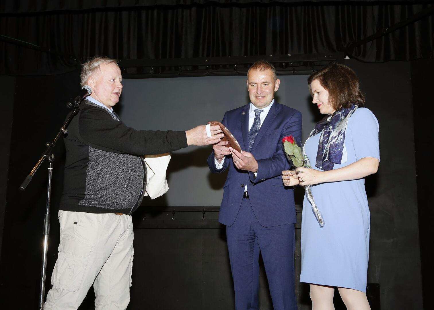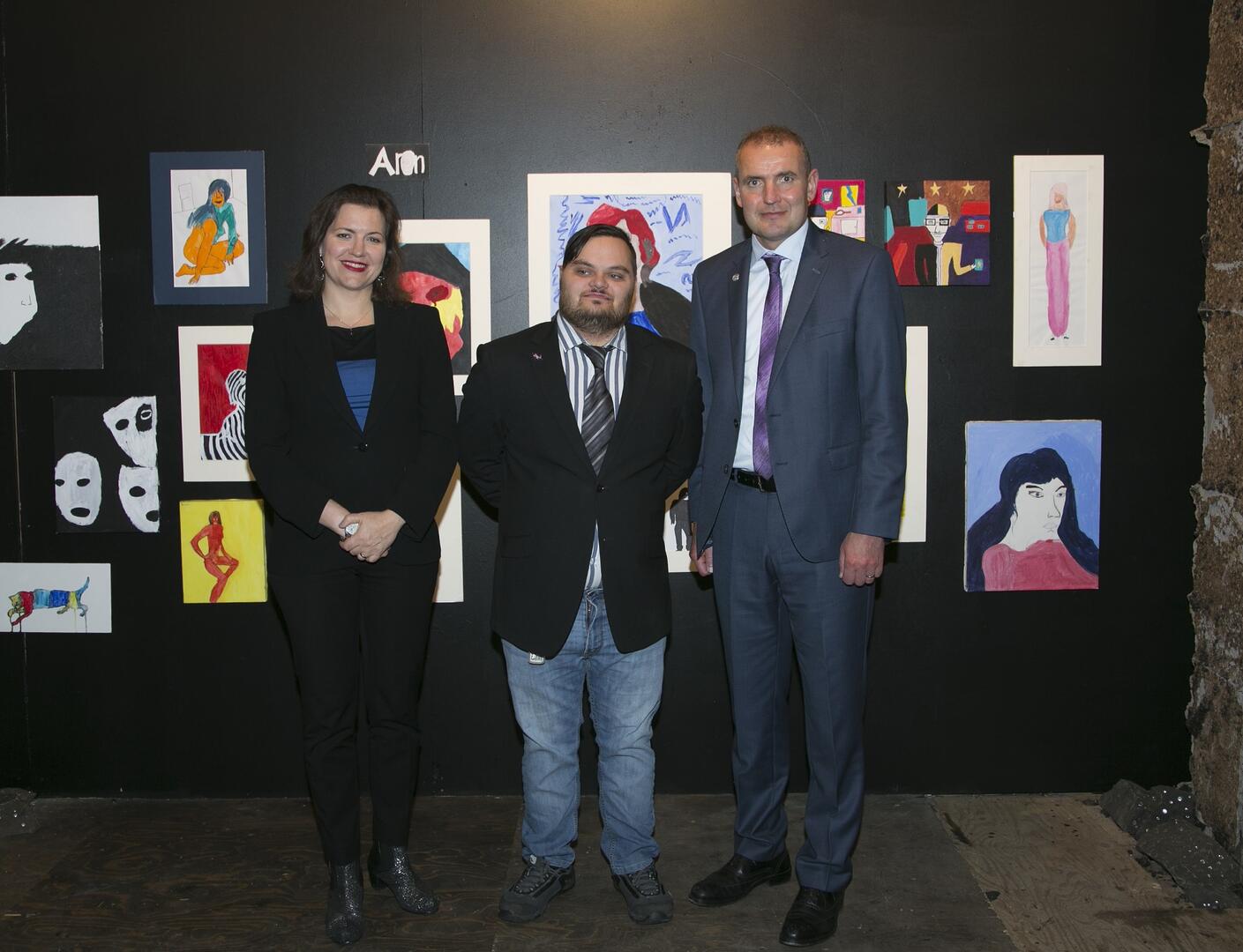 Forsetahjón ásamt Aron Kale sem á mörg myndverk á sýningu í Sláturhúsinu á Egilsstöðum.