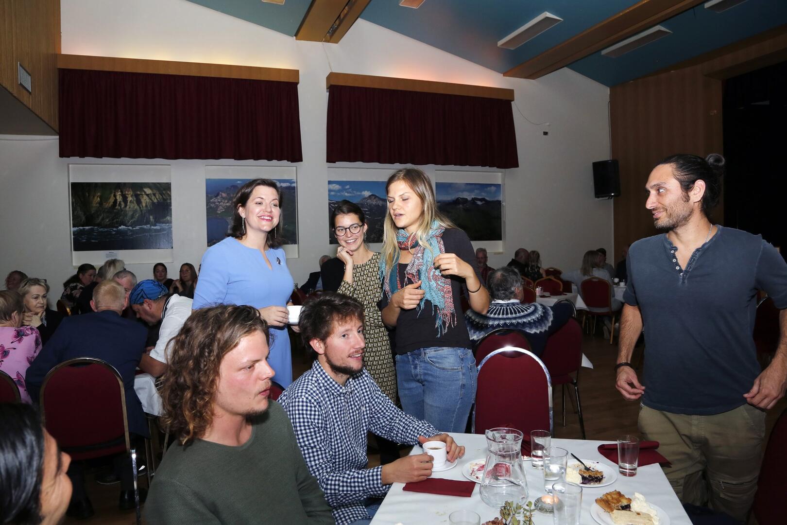 Eliza Reid forsetafrú spjallar við gesti á samkomu í Borgarfirði.