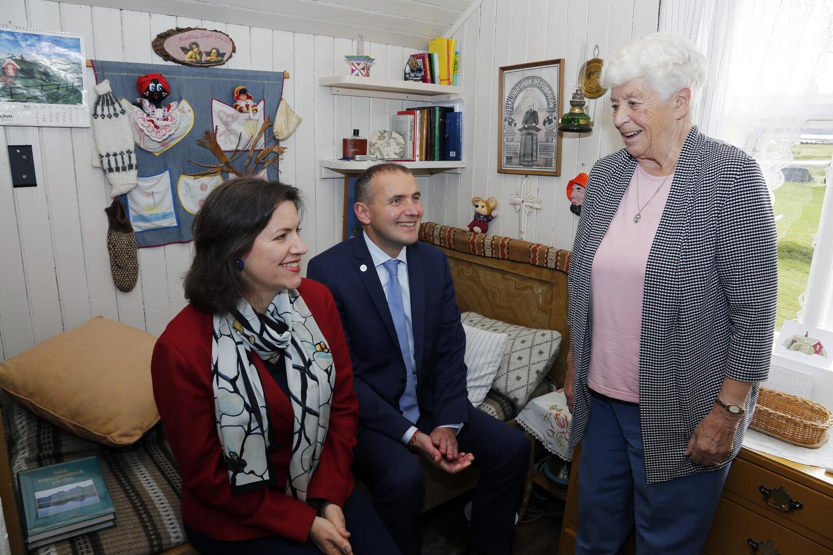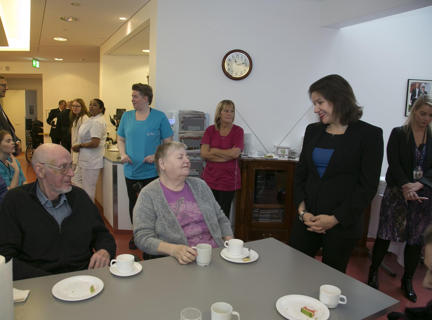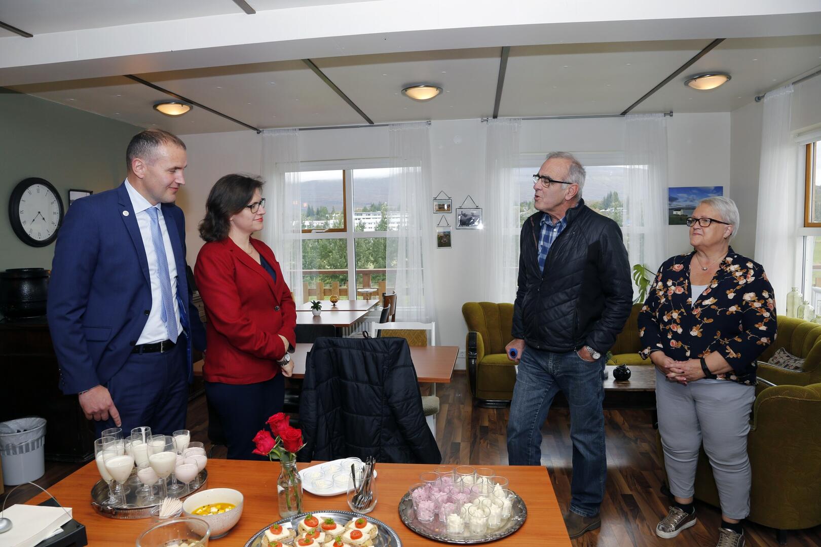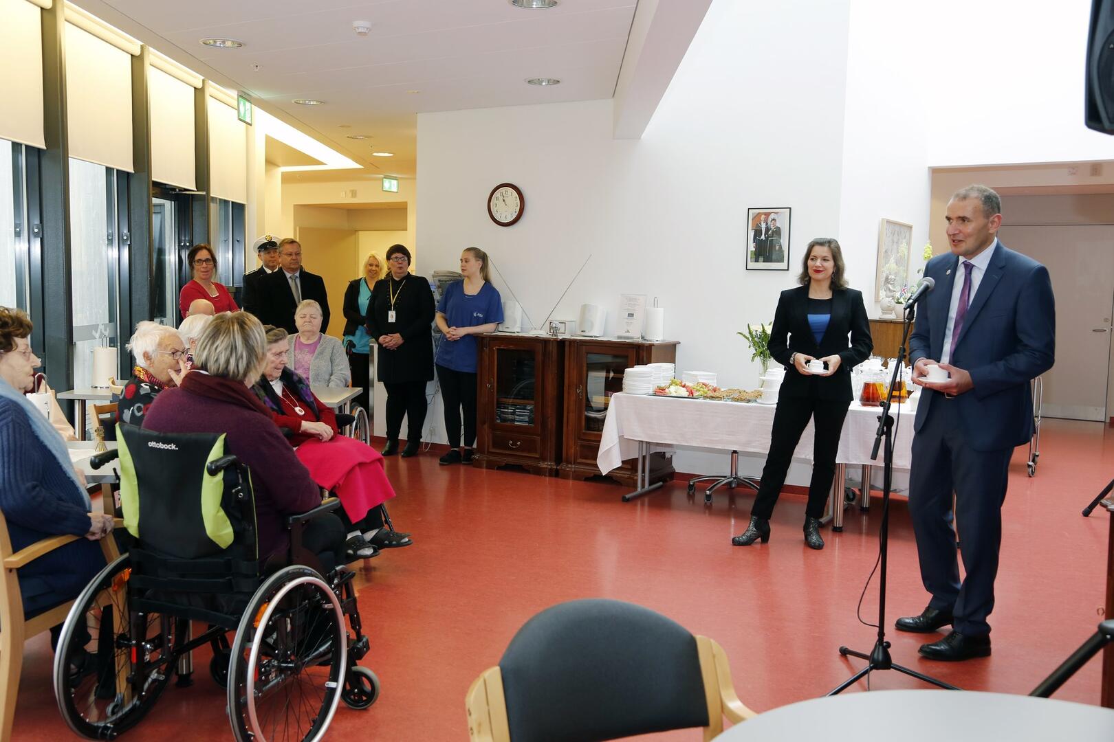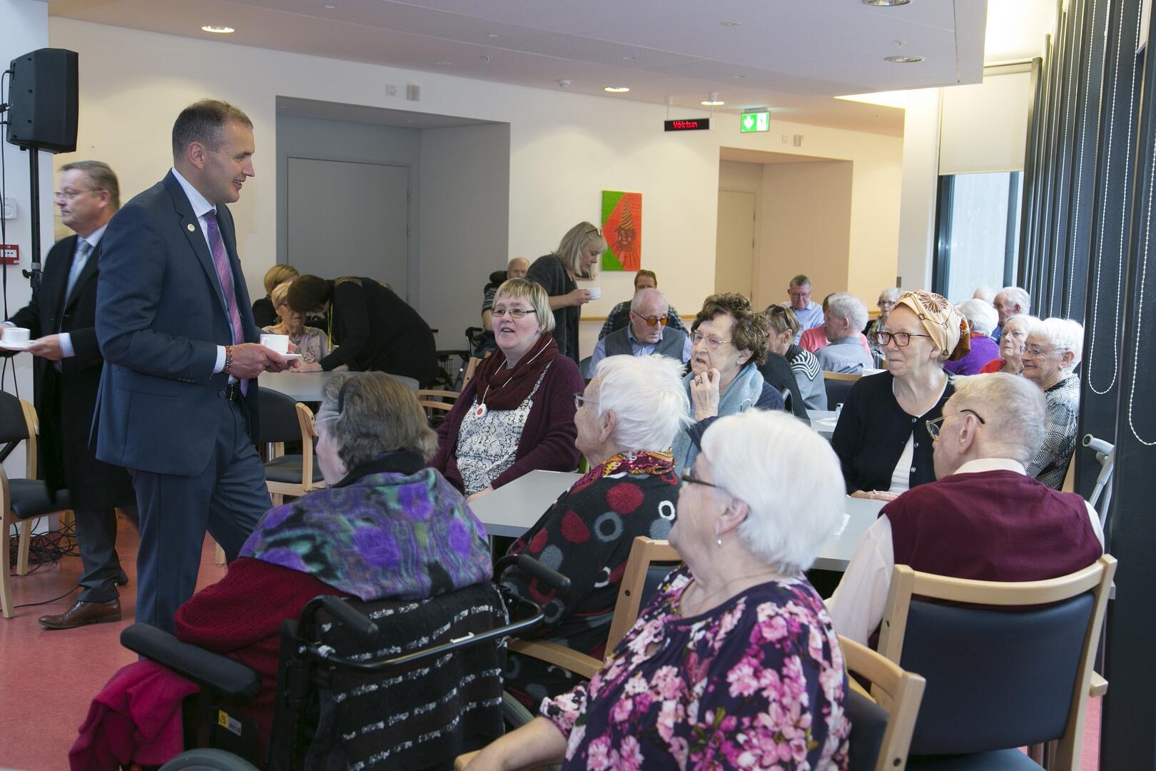 Forseti ávarpar dvalargesti og starfsfólk á hjúkrunarheimilinu Dyngju.