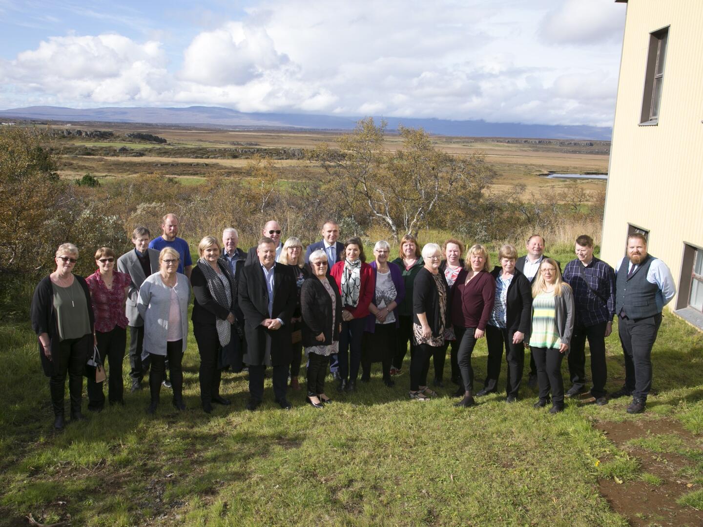 Forsetahjón ásamt heimafólki og gestum á Egilsstaðabúinu.