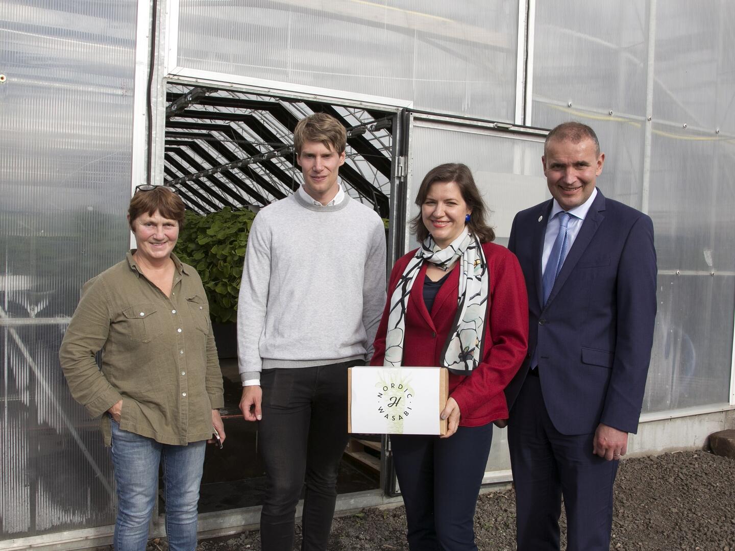 Forsetahjón gæða sér á wasabi, sterku kryddi af japönskum uppruna sem ræktað er á Valgerðarstöðum.