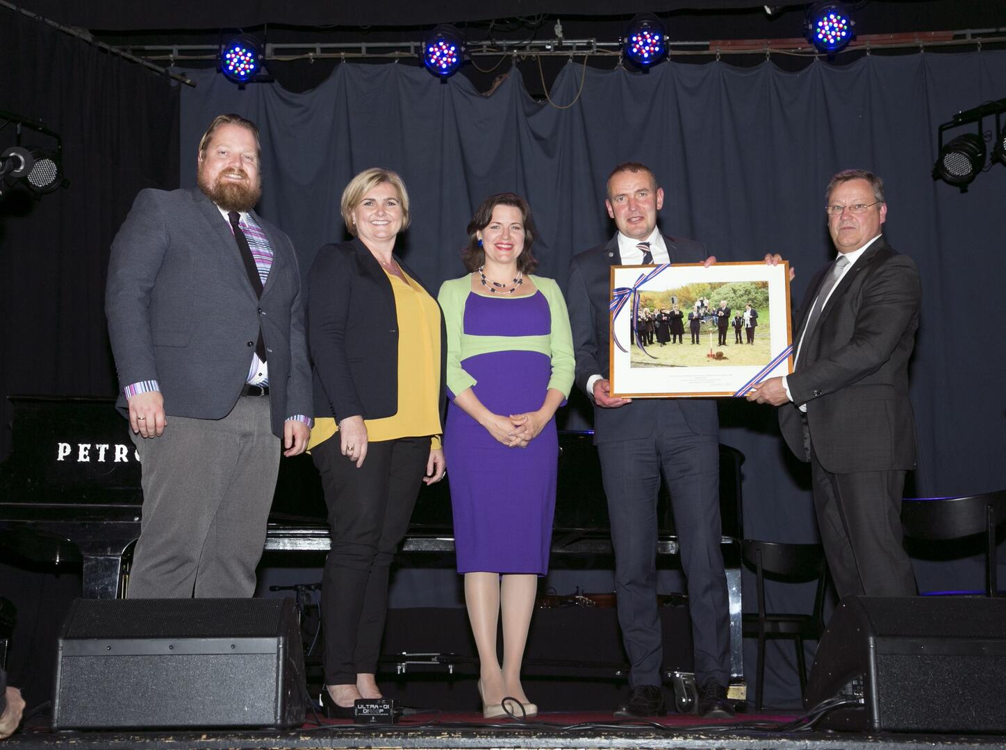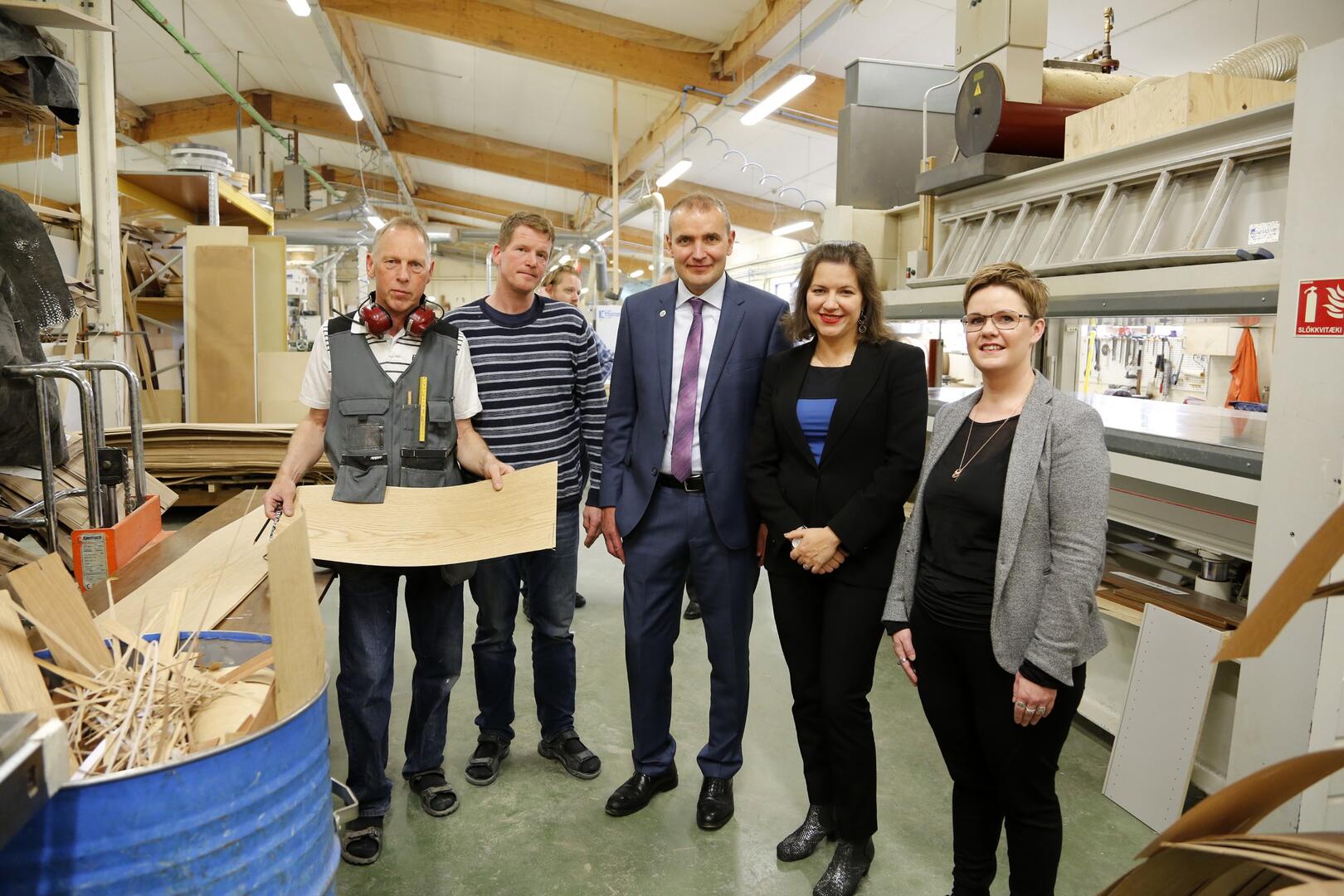 Forsetahjón ásamt Sigrúnu Hauksdóttur gæðastjóra og fleiri starfsmönnum Brúnáss innréttinga.