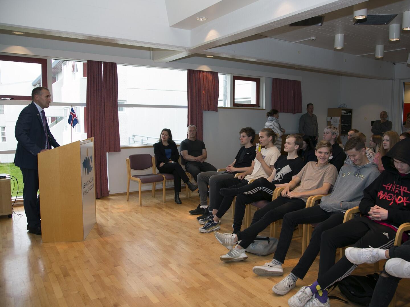 Forseti ávarpar nemendur á sal Menntaskólans á Egilsstöðum.