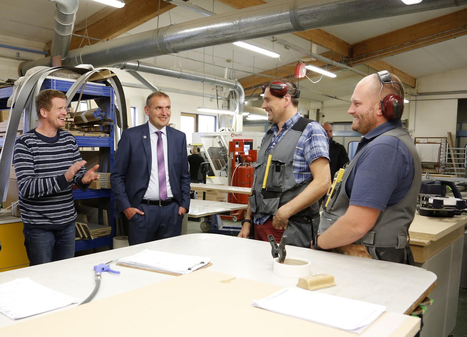 Heilsað upp á starfsmenn hjá Brúnási innréttingum á Egilsstöðum.