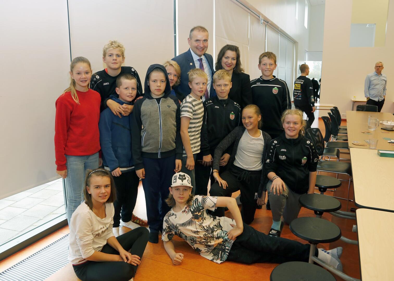 Forsetahjón í hópi grunnskólabarna á Egilsstöðum.