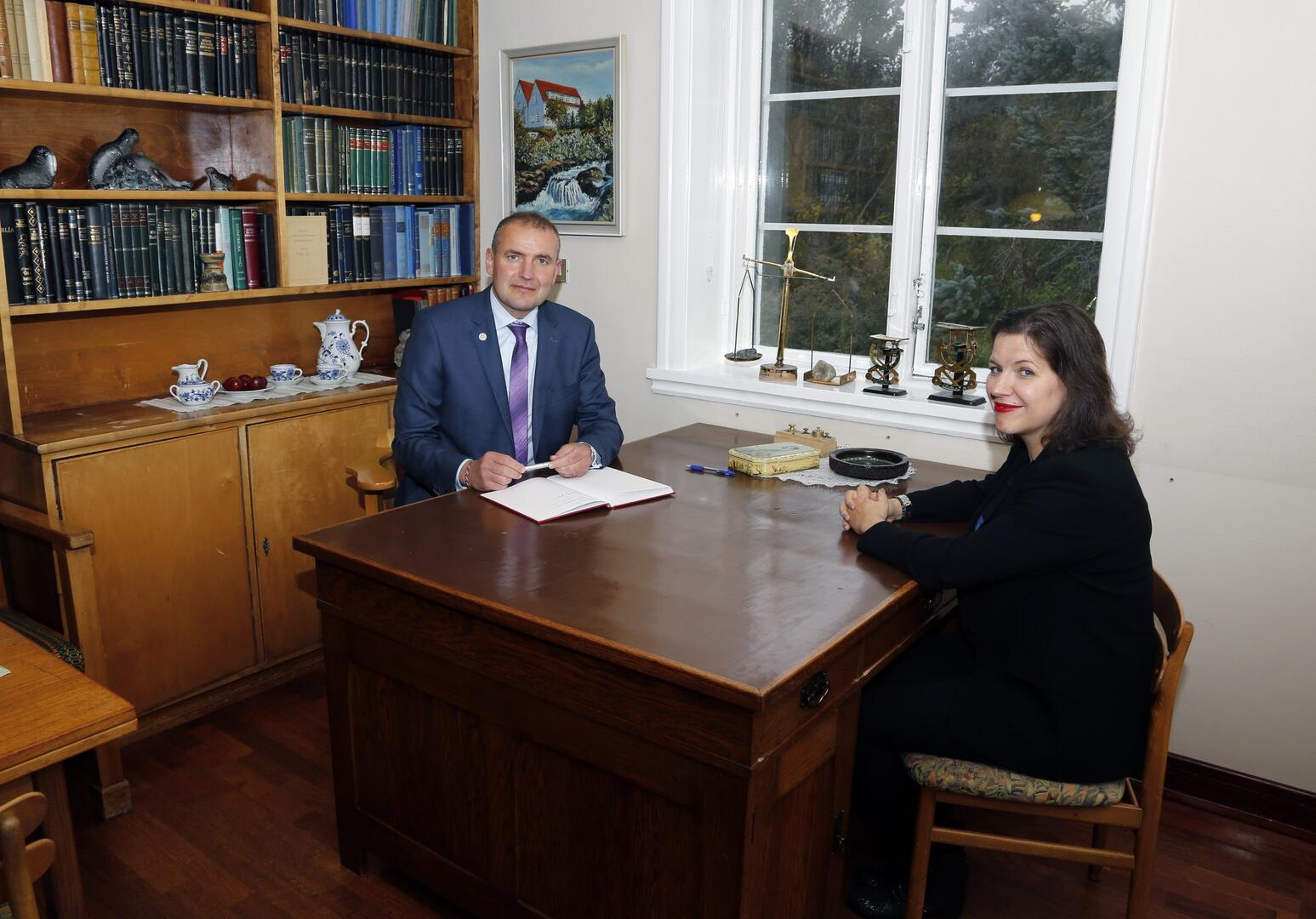Forsetahjónin skrifa í gestabók Hússtjórnarskólans á Hallormsstað.