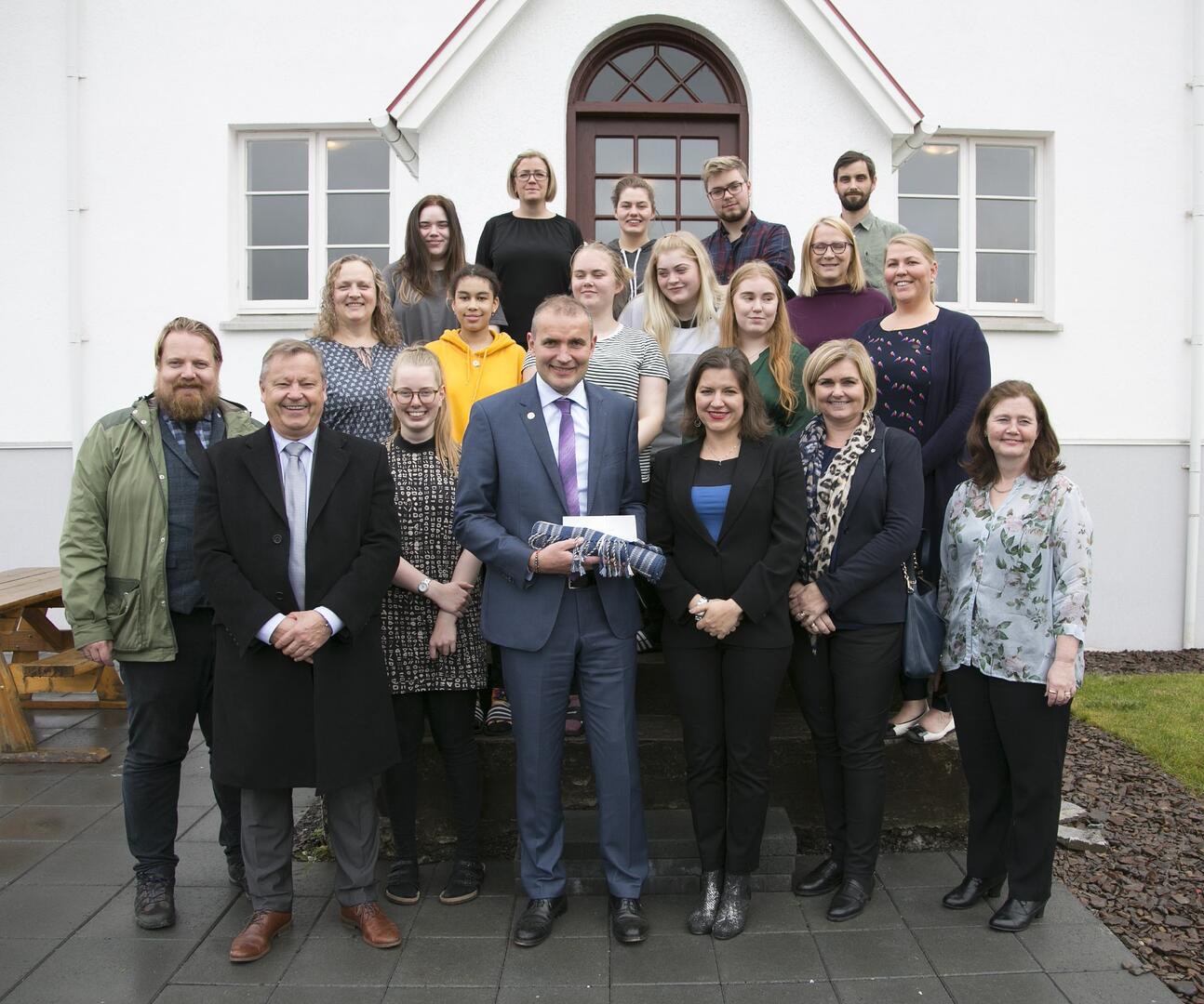 Forseti þiggur minjagrip frá Hússtjórnarskólanum á Hallormsstað.