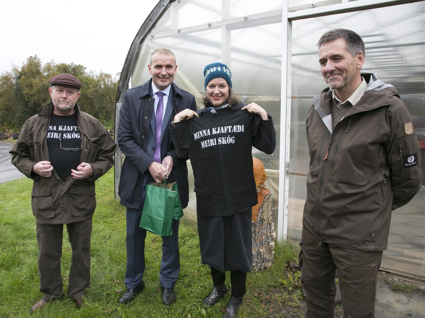 Forsetahjón ásamt Þresti Eysteinssyni skógræktarstjóra og Þór Þorfinnssyni skógarverði í skógrækt Skógræktar ríkisins á Hallormsstað.