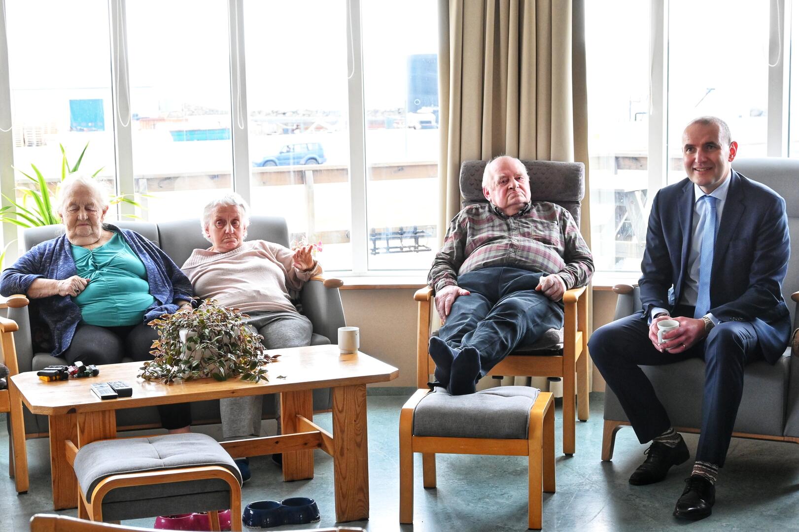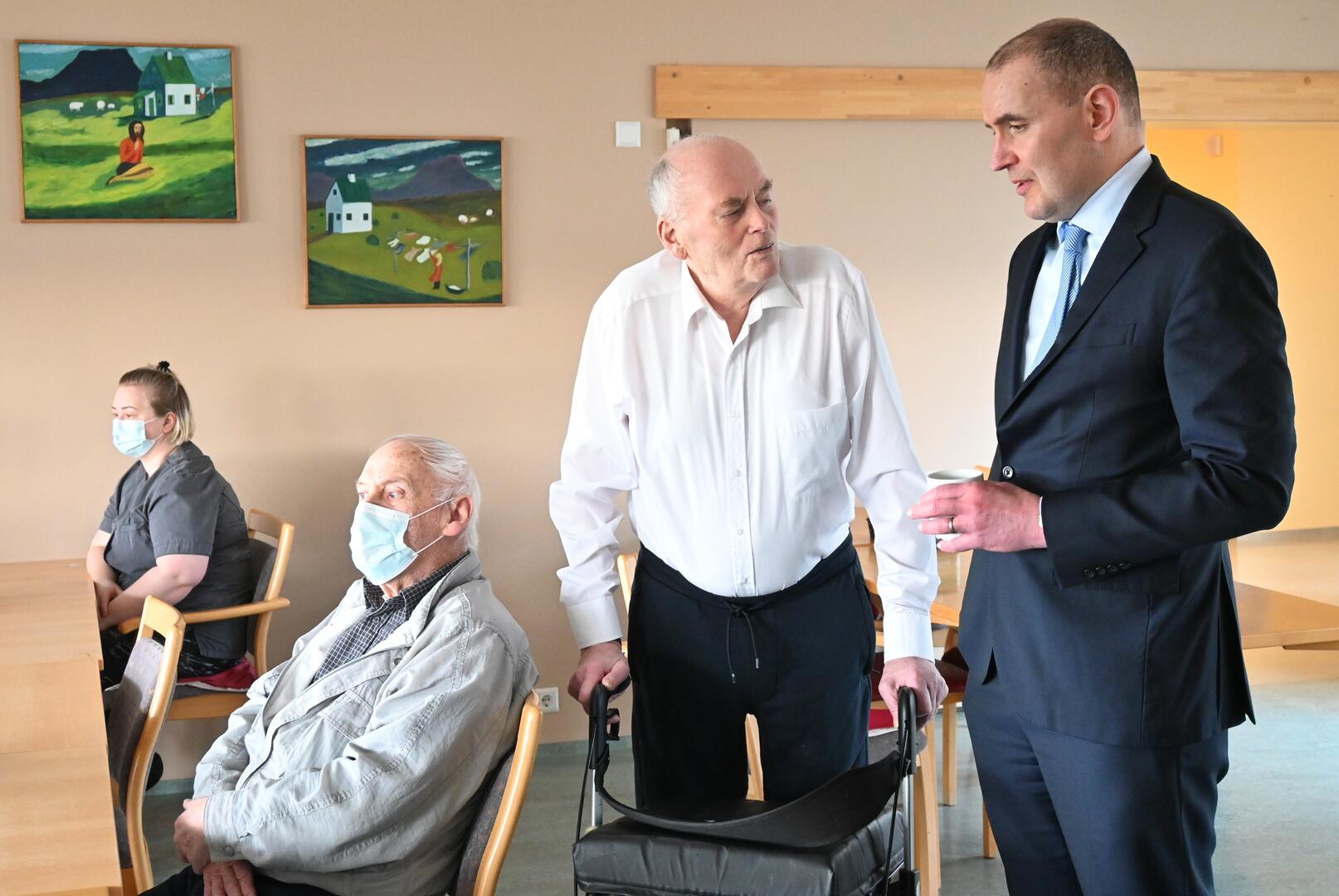 Forseti ræðir við íbúa á hjúkrunar- og dvalarheimilinu Nausti á Þórshöfn. Ljósmynd/Una Sighvatsdóttir