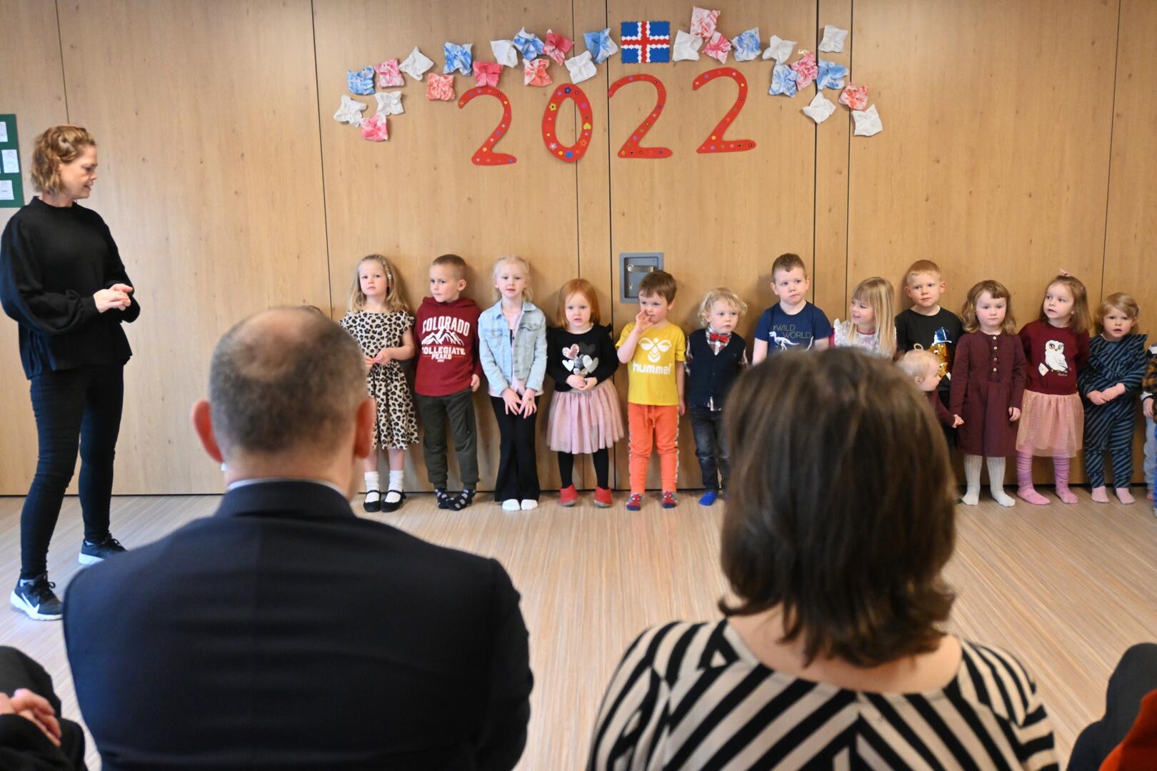 Forsetahjón heimsækja leikskólann Barnaból á Þórshöfn. Ljósmynd/Una Sighvatsdóttir