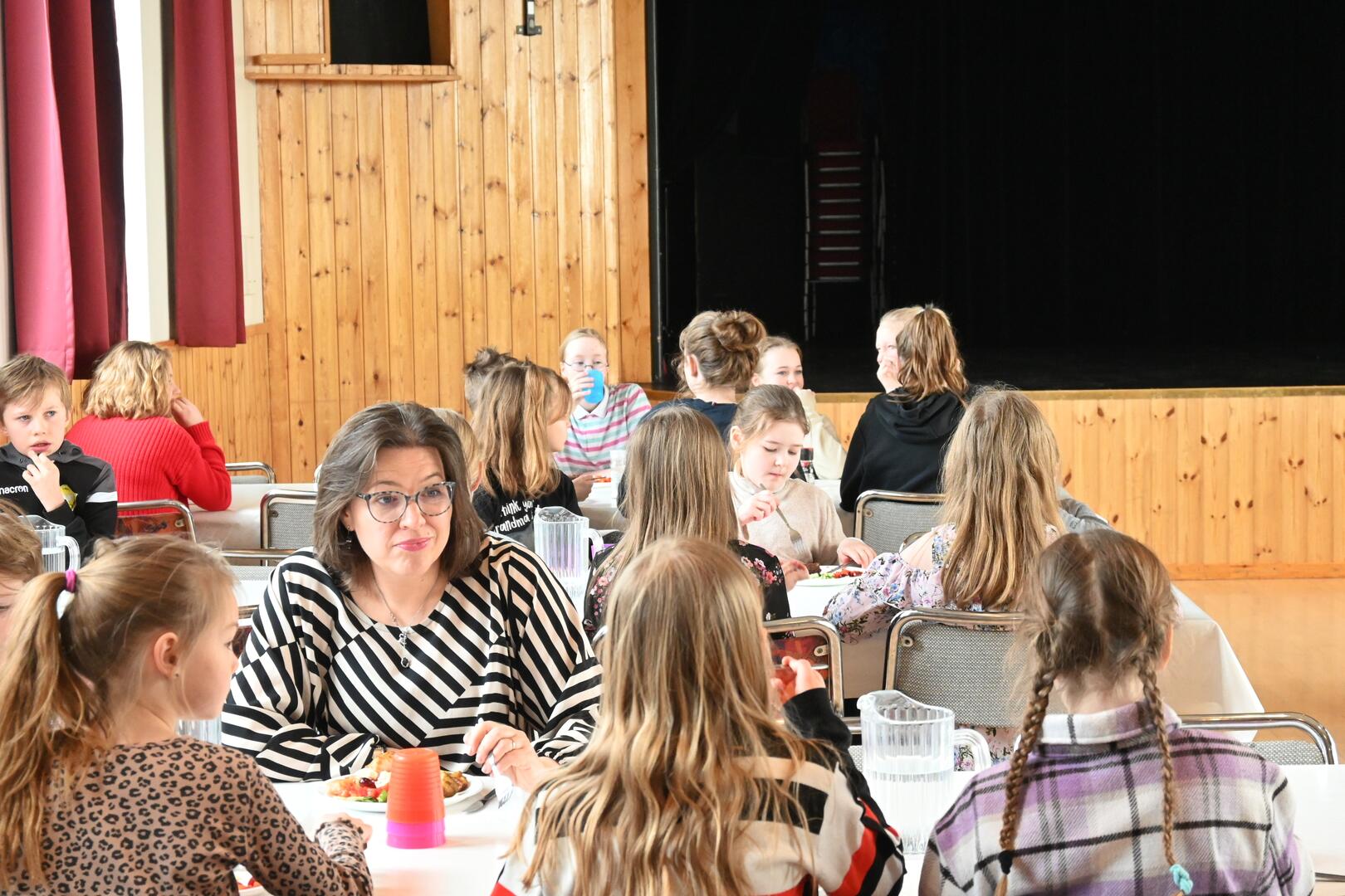 Forsetafrú snæðir hádegisverð með nemendum Grunnskólans á Þórshöfn. Ljósmynd/Una Sighvatsdóttir
