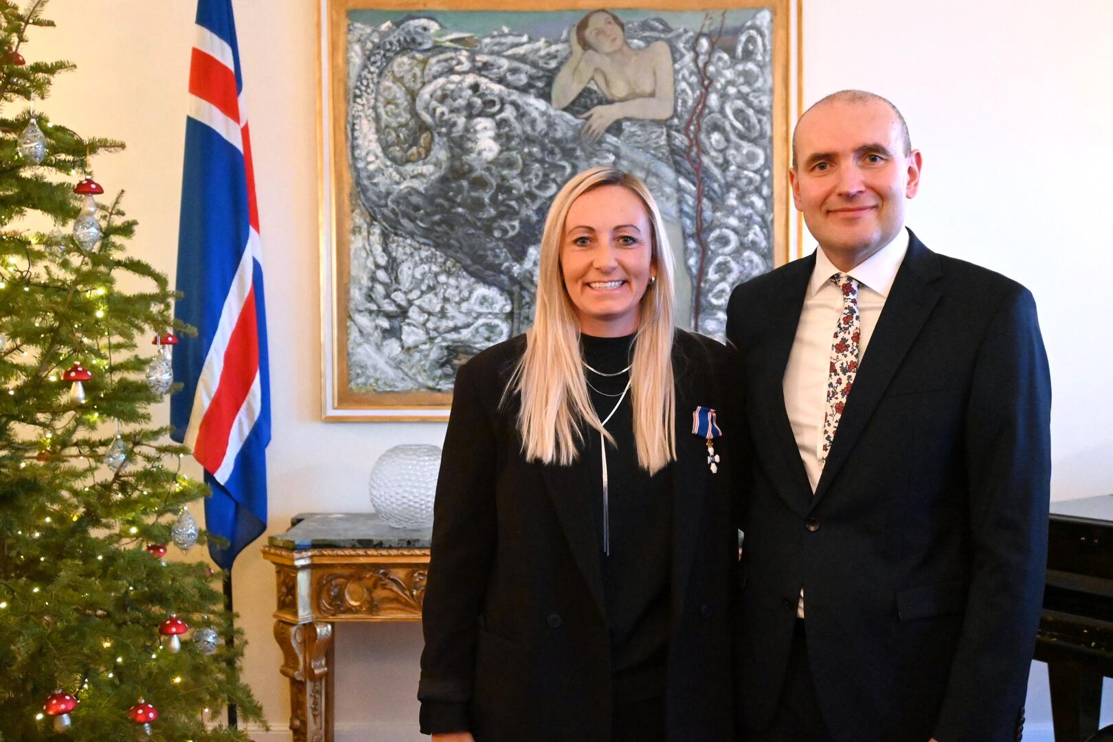 Erna Sif Arnardóttir, dósent við Háskólann í Reykjavík og svefnfræðingur, riddarakross fyrir framlag til nýsköpunar og svefnrannsókna.