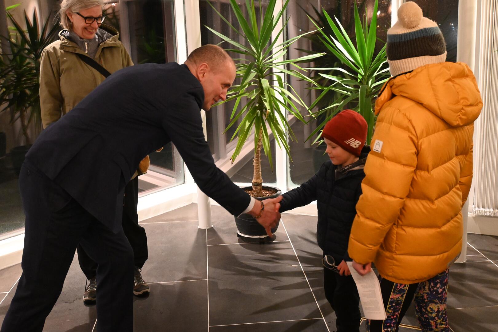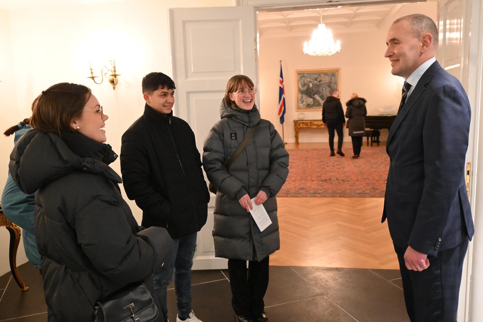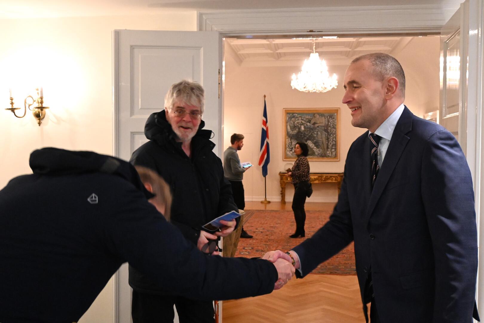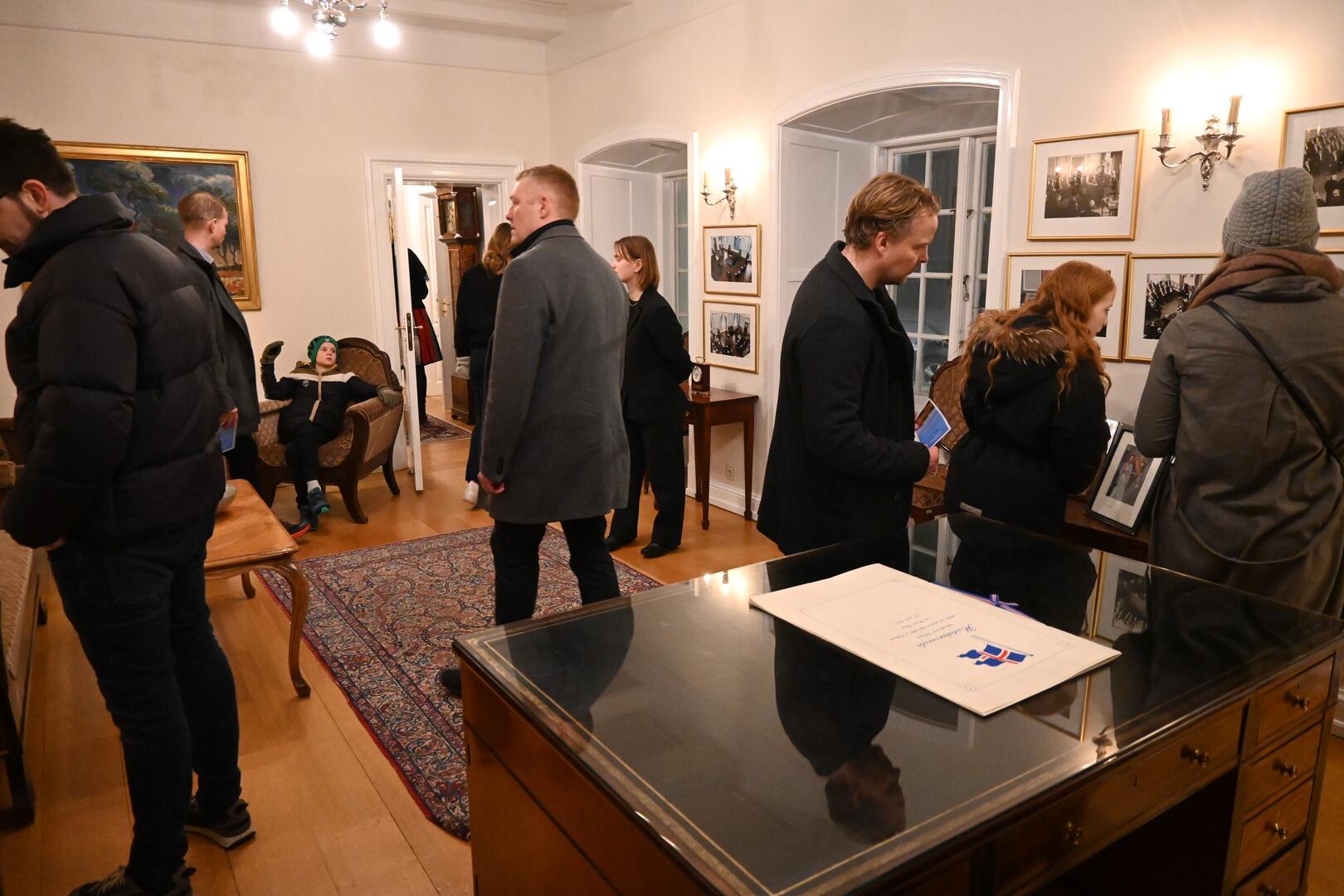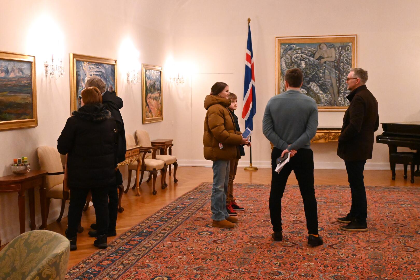 Forseti tekur á móti gestum og gangandi í opnu húsi á Bessastöðum í tilefni Safnanætur á Vetrarhátíð.