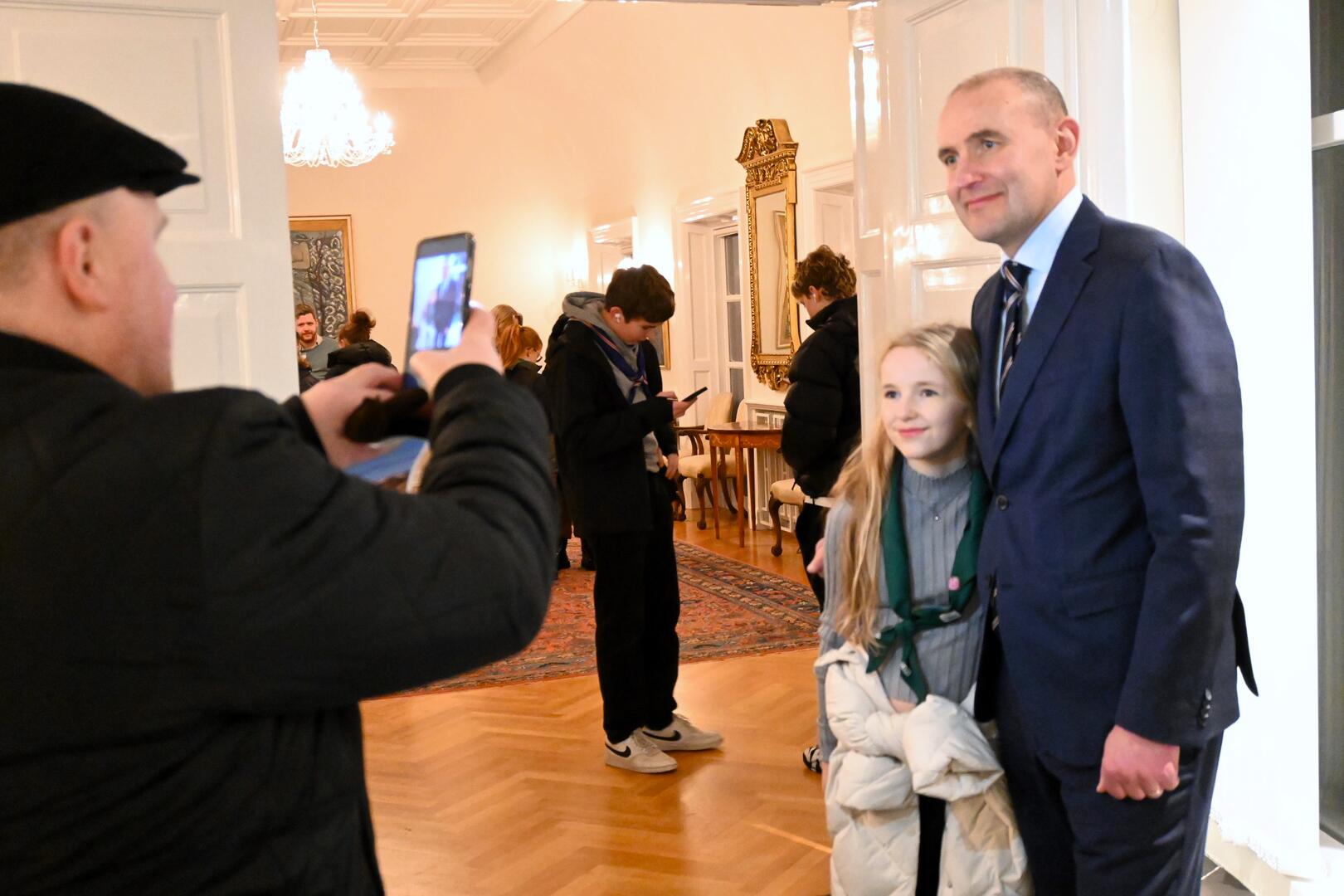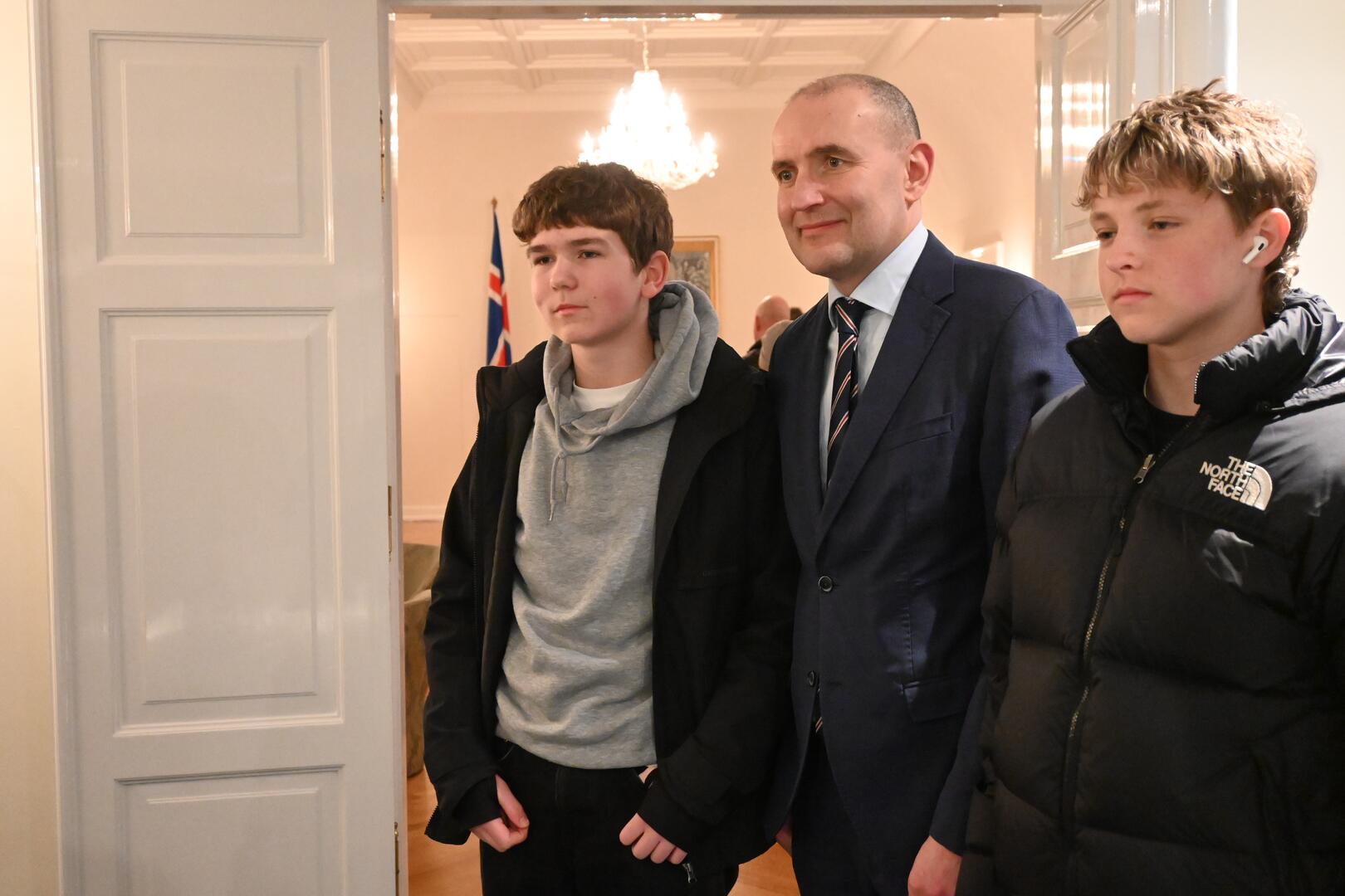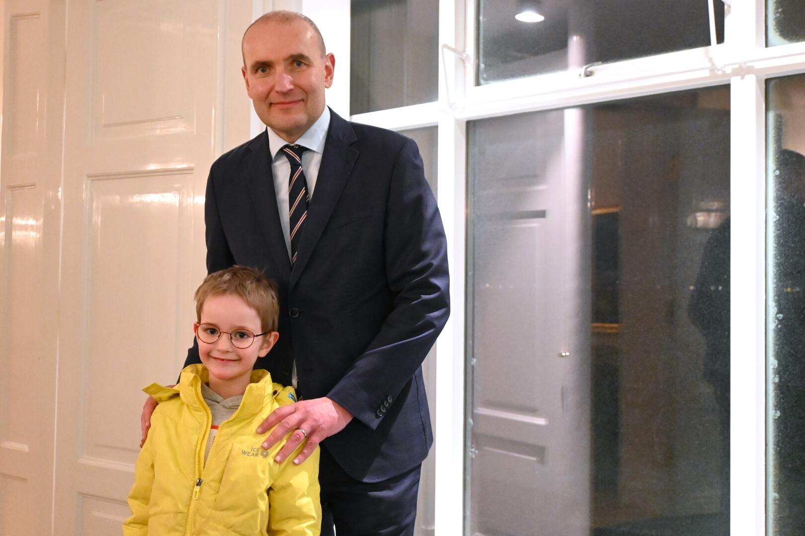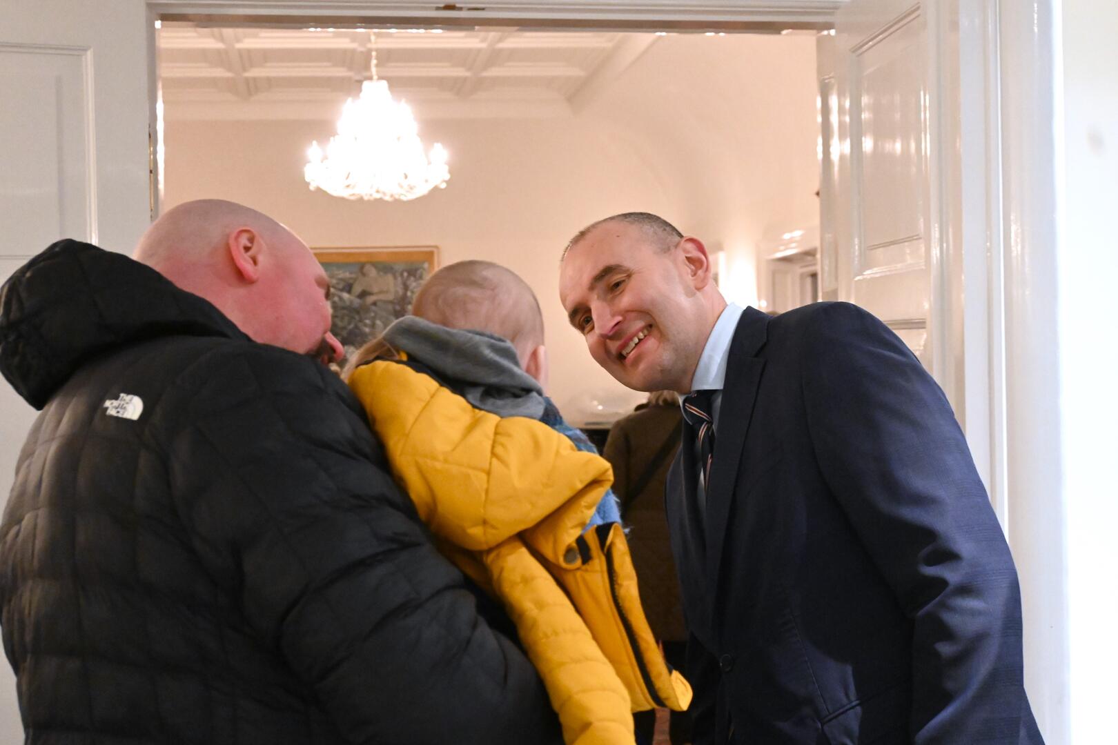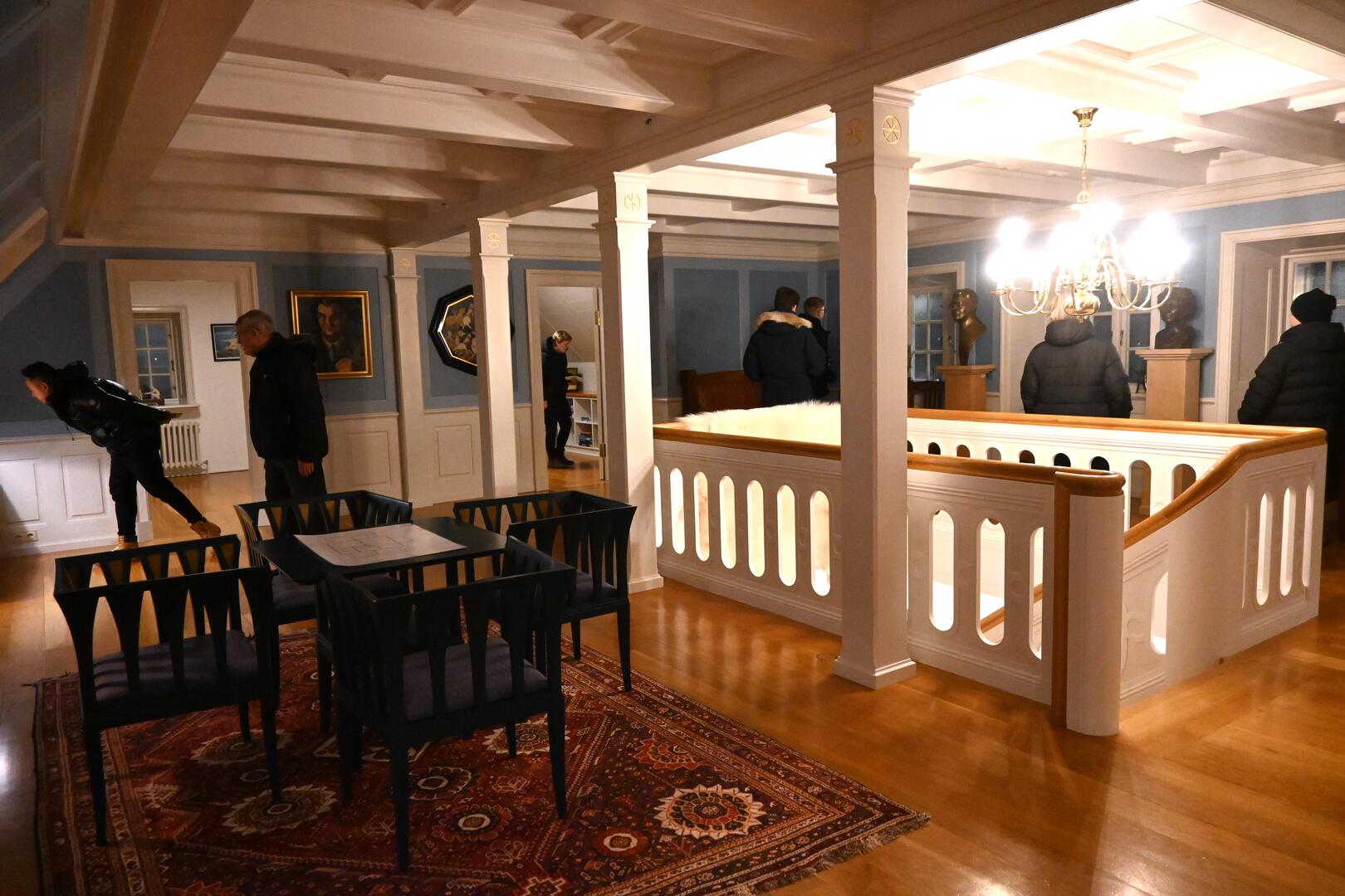 Forseti tekur á móti gestum og gangandi í opnu húsi á Bessastöðum í tilefni Safnanætur á Vetrarhátíð.