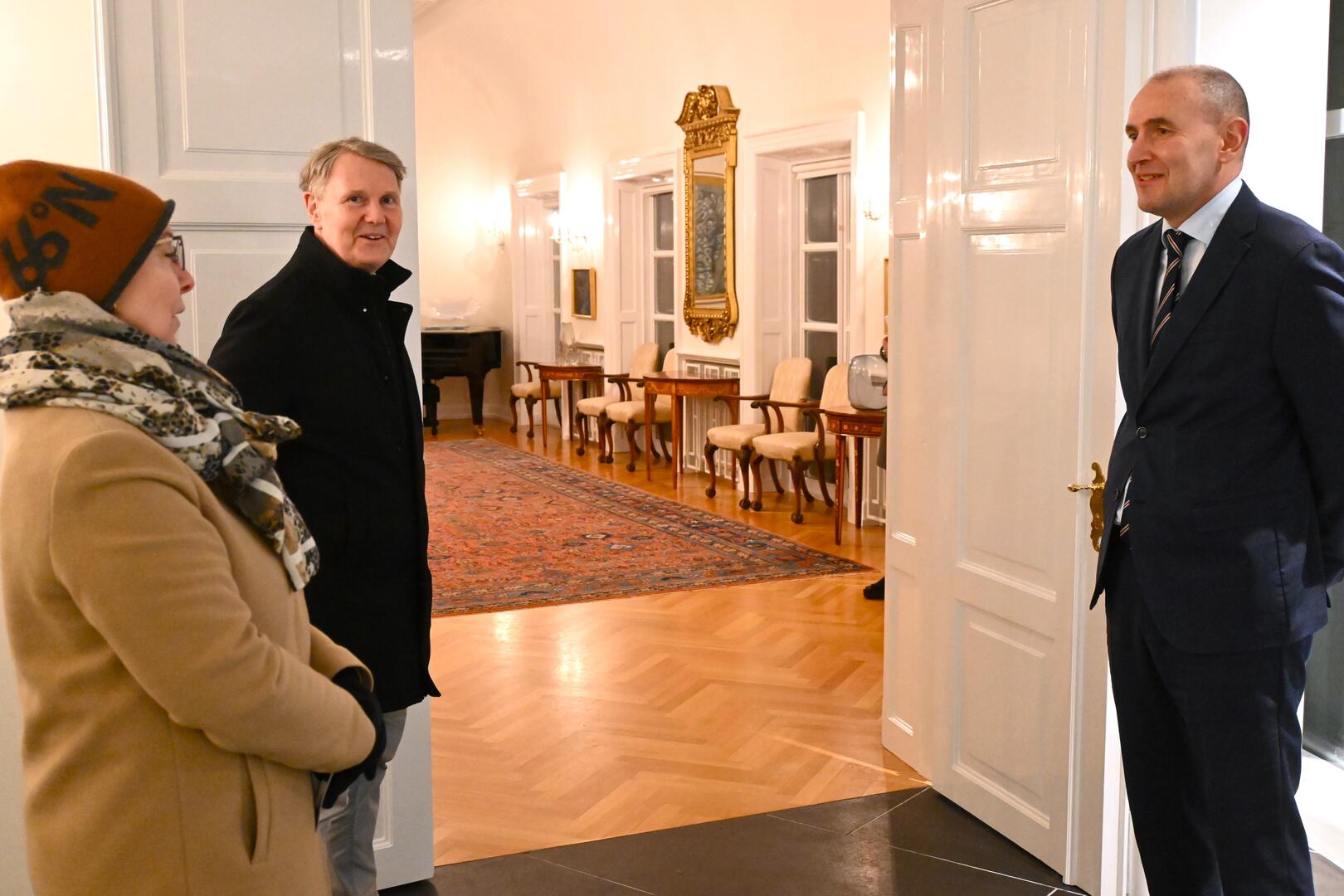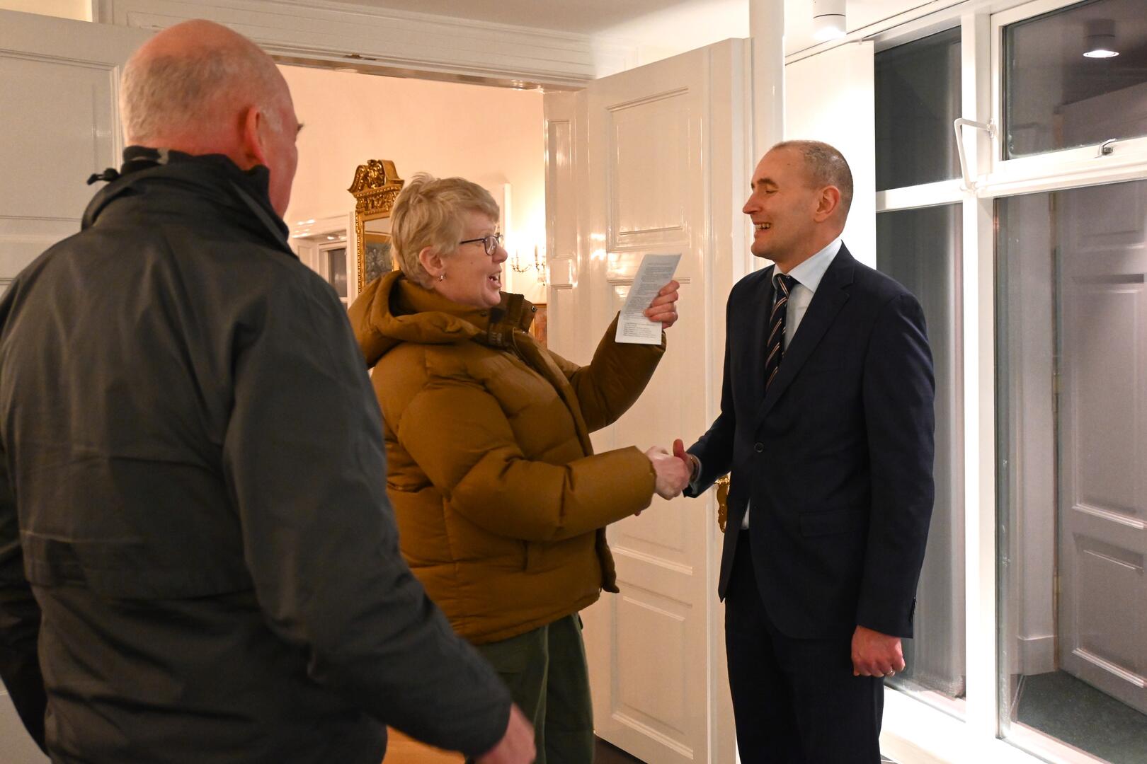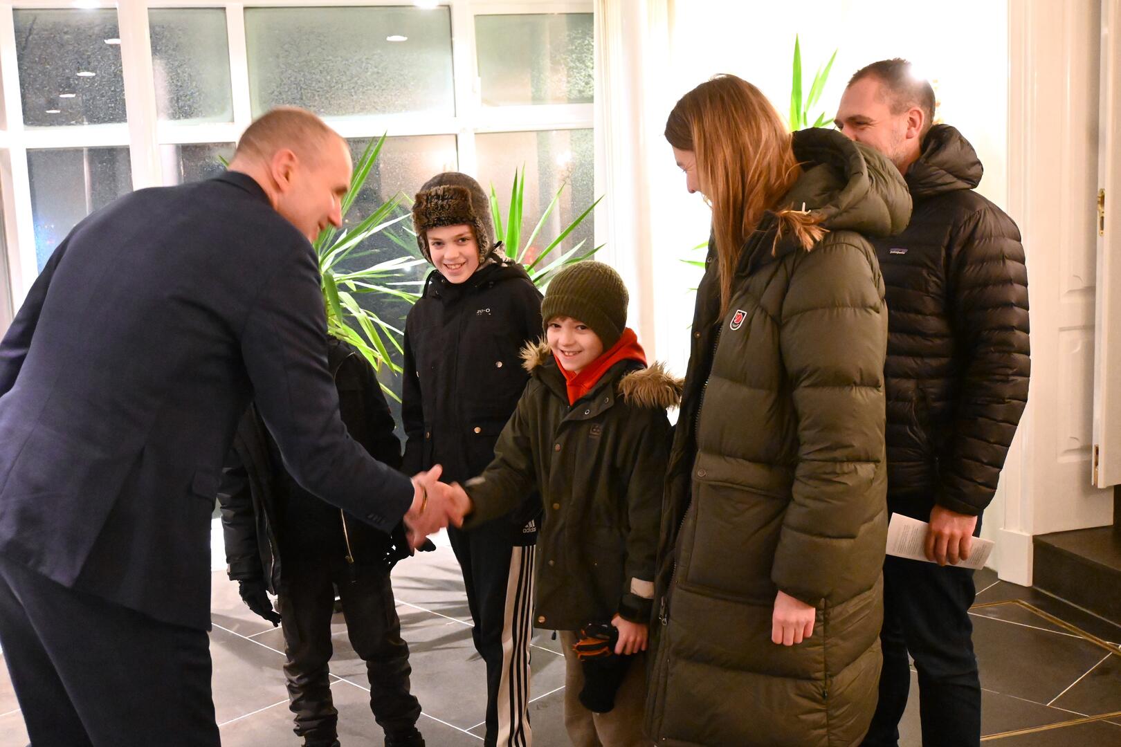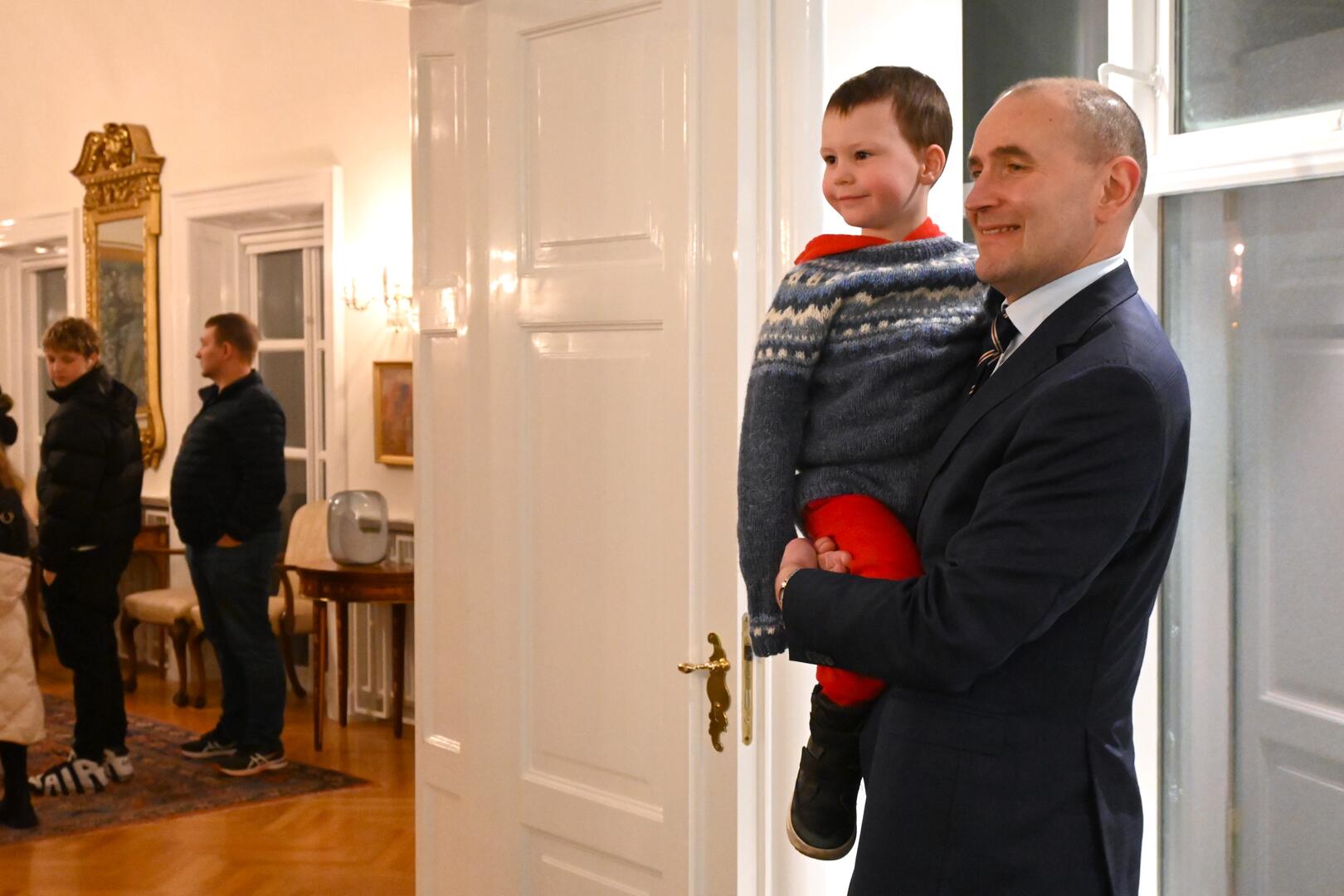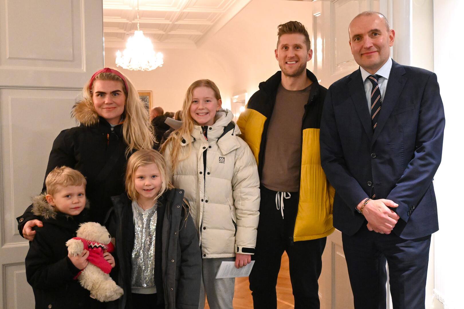 Forseti tekur á móti gestum og gangandi í opnu húsi á Bessastöðum í tilefni Safnanætur á Vetrarhátíð.