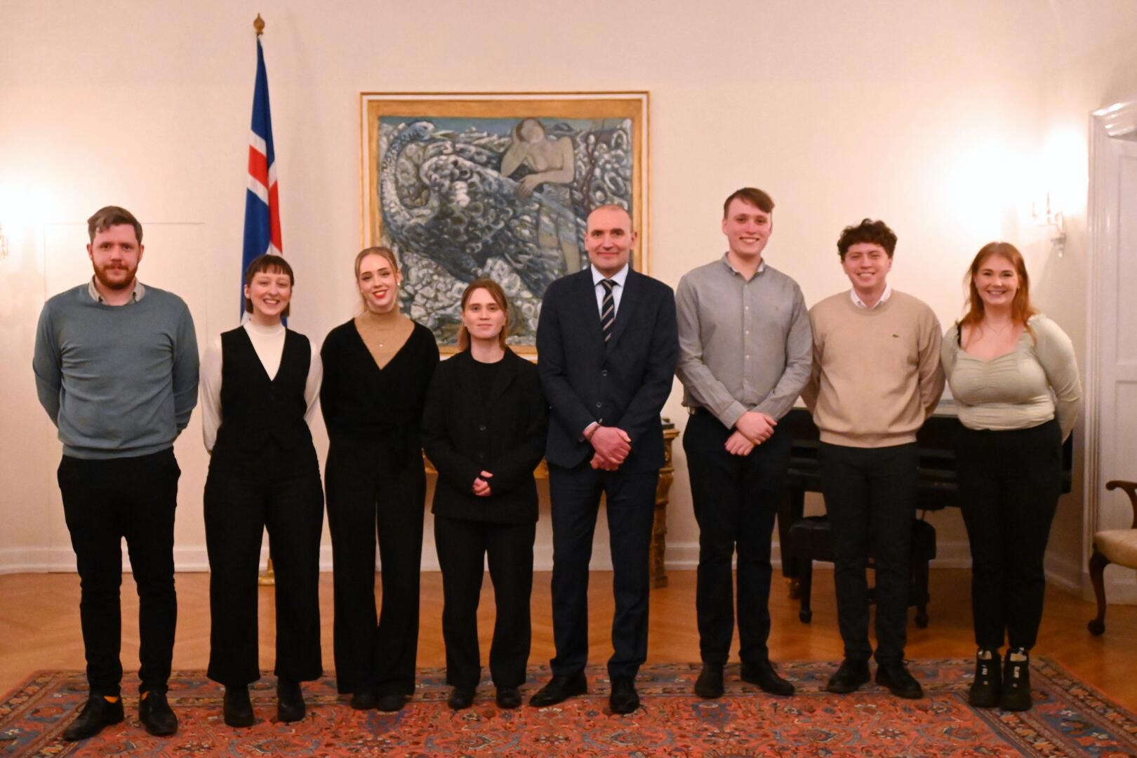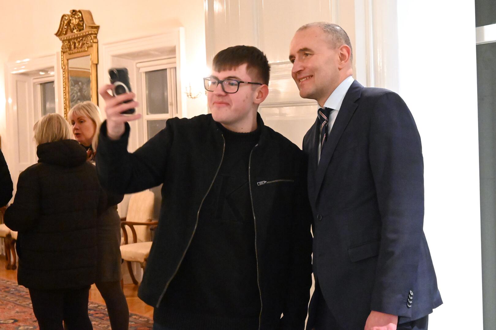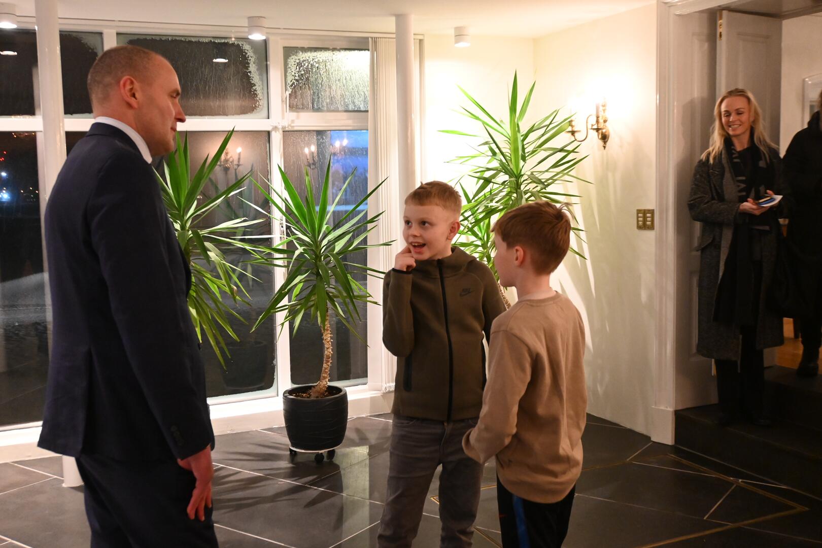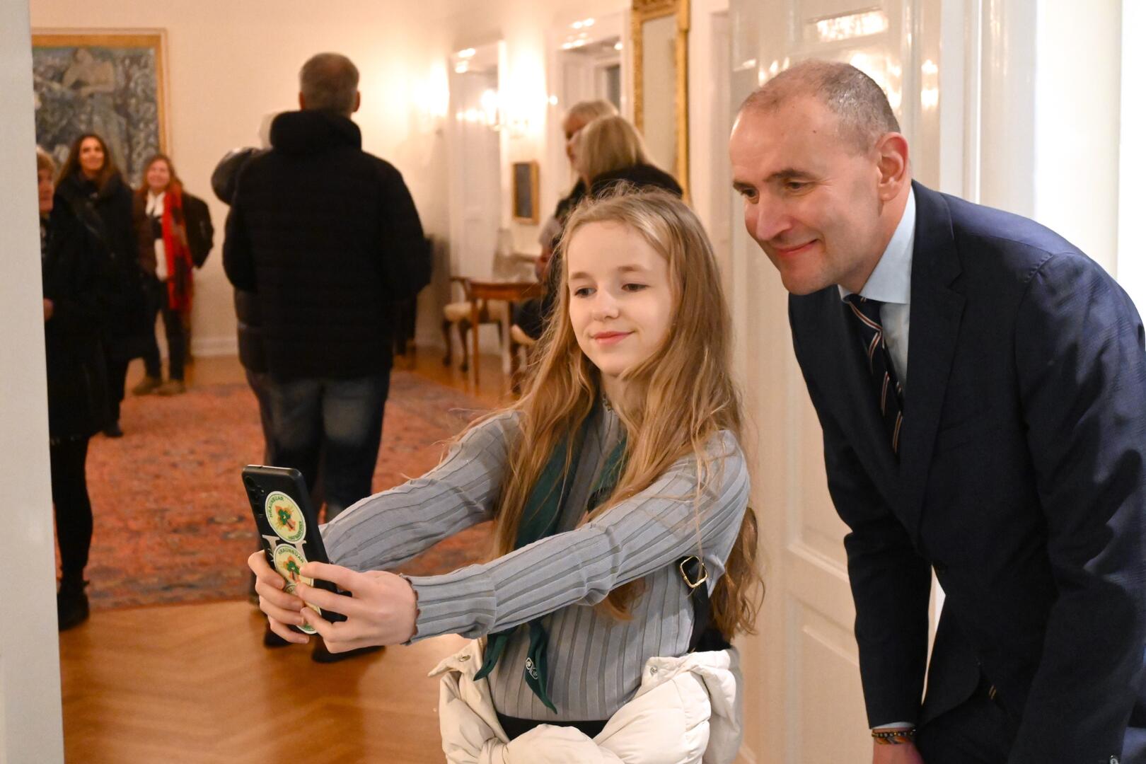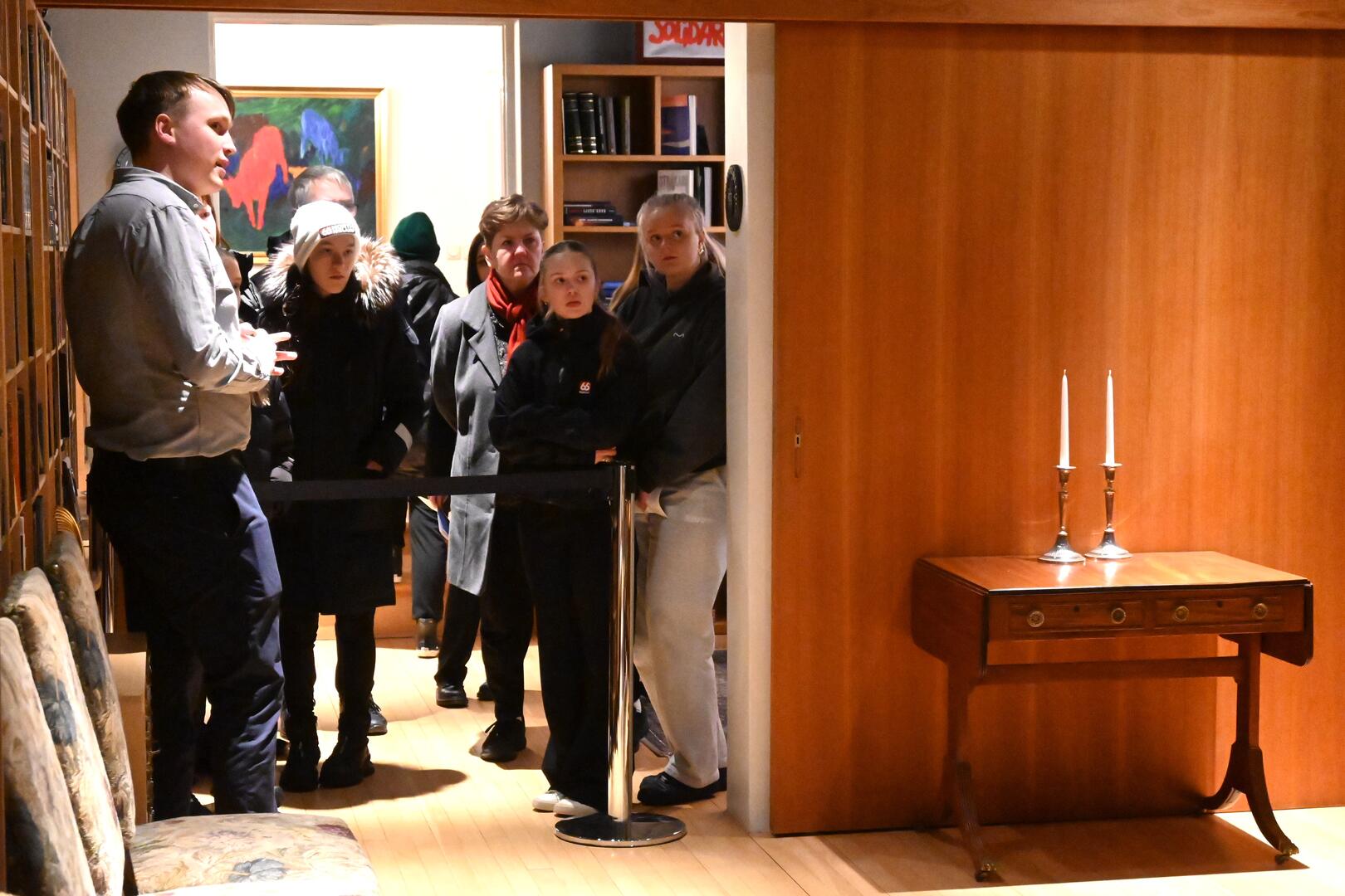 Forseti tekur á móti gestum og gangandi í opnu húsi á Bessastöðum í tilefni Safnanætur á Vetrarhátíð.