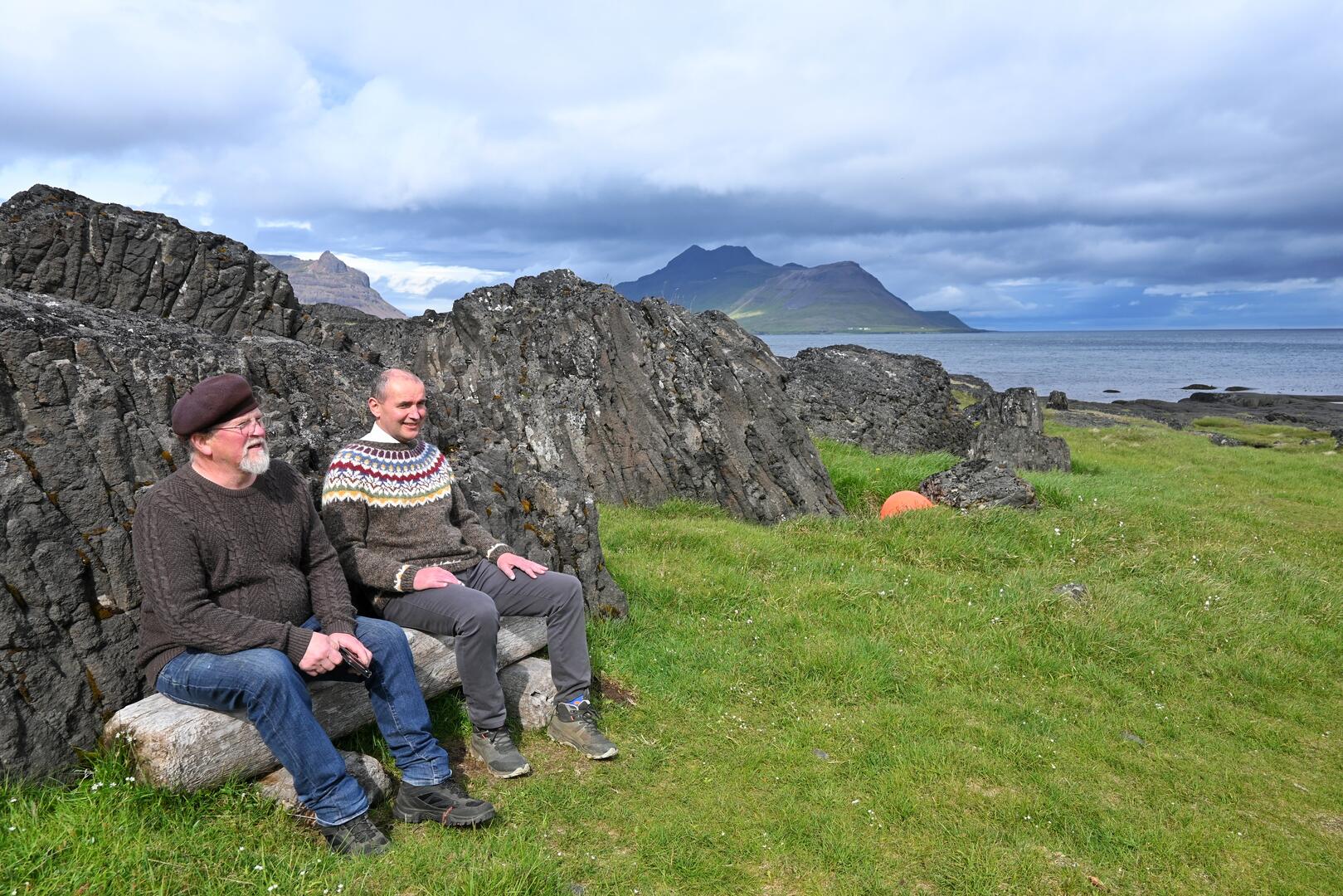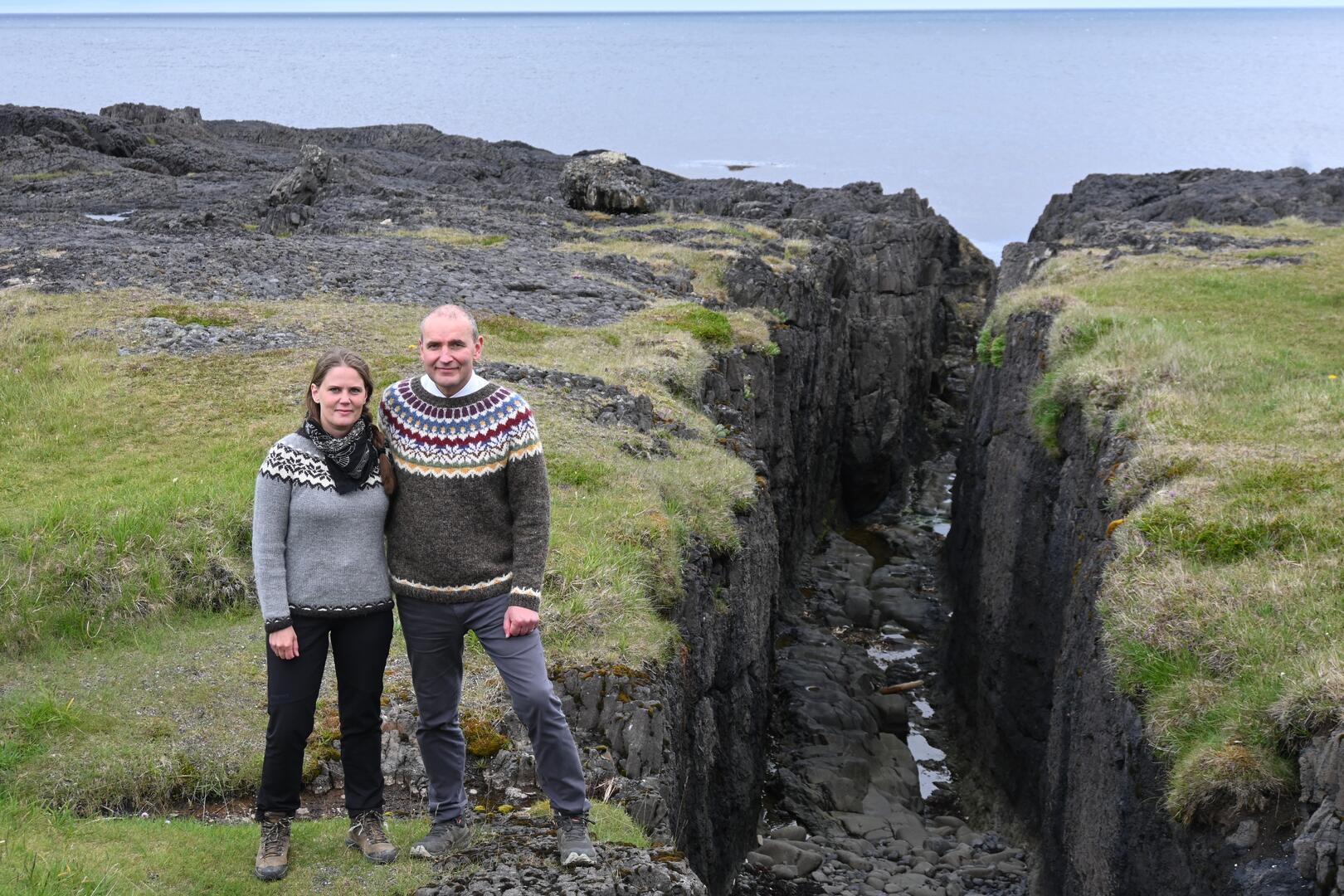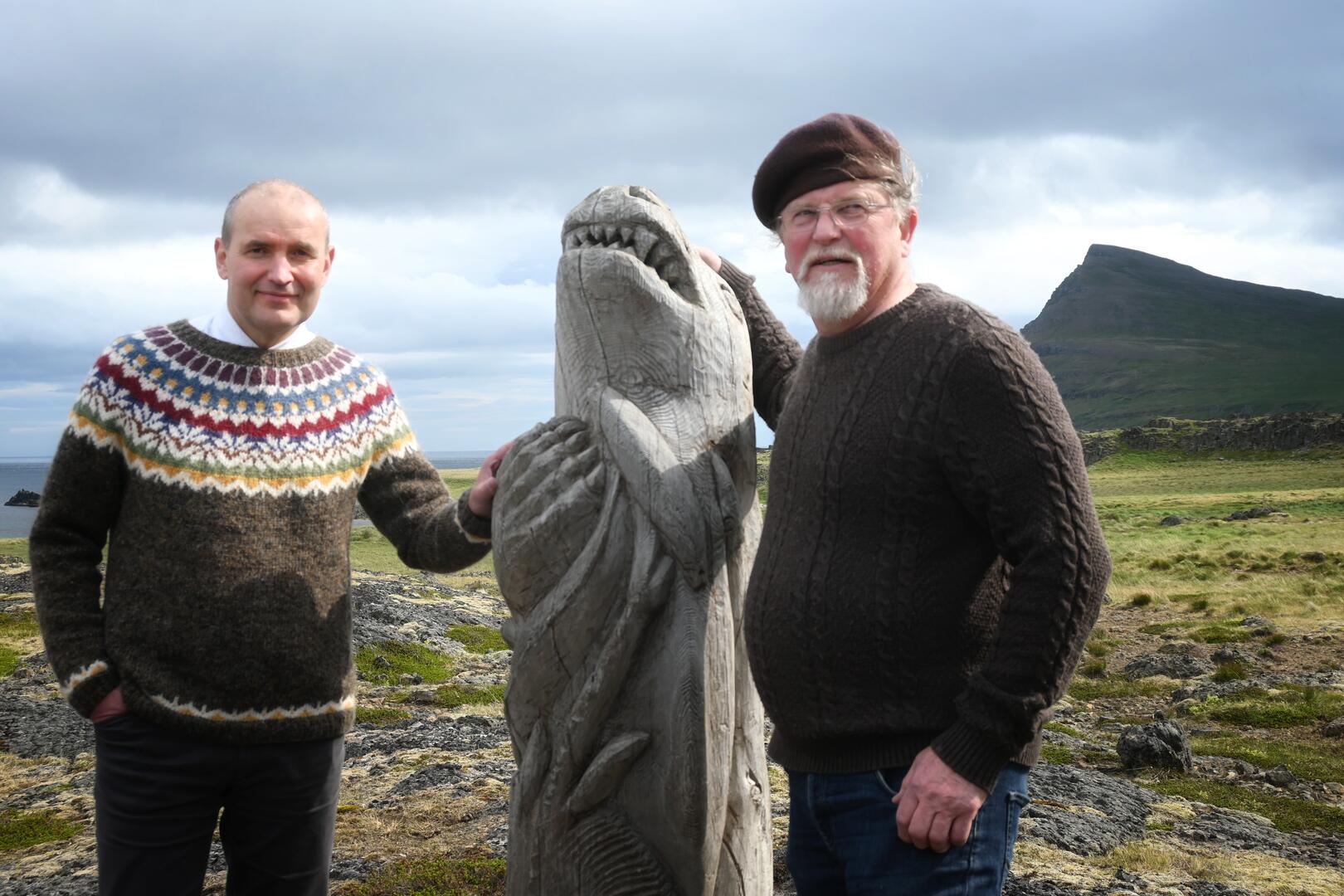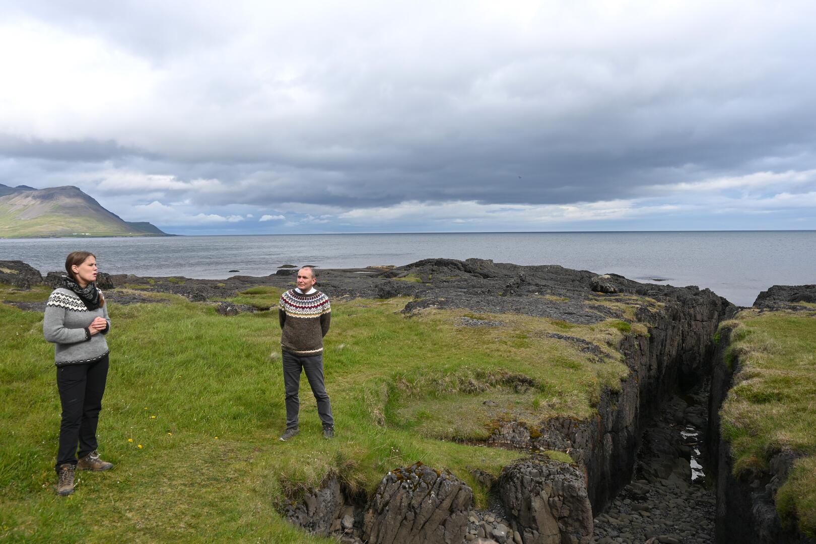 Forseti ásamt Rakel Valgeirsdóttur þjóðfræðingi við Kistuvog í Trékyllisvík. Ljósmynd/Una Sighvatsdóttir