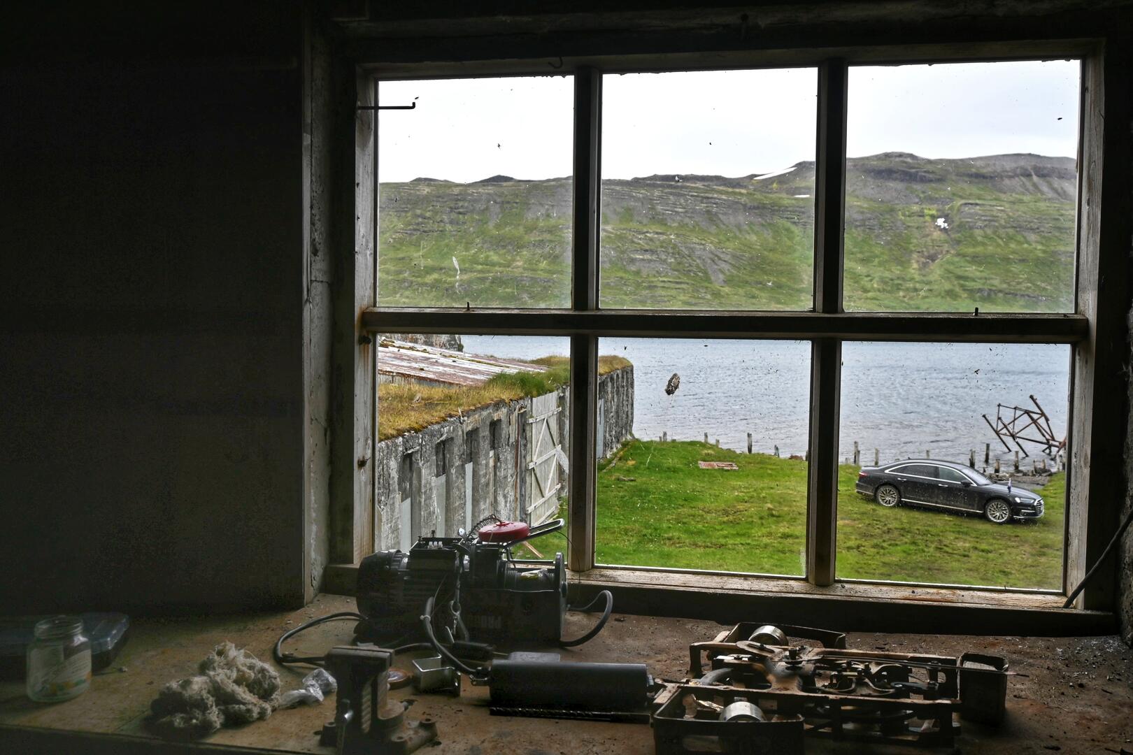 Forsetabíll númer 1 við síldaverksmiðjuna á Eyri við Ingólfsfjörð á Ströndum. Ljósmynd/Una Sighvatsdóttir.