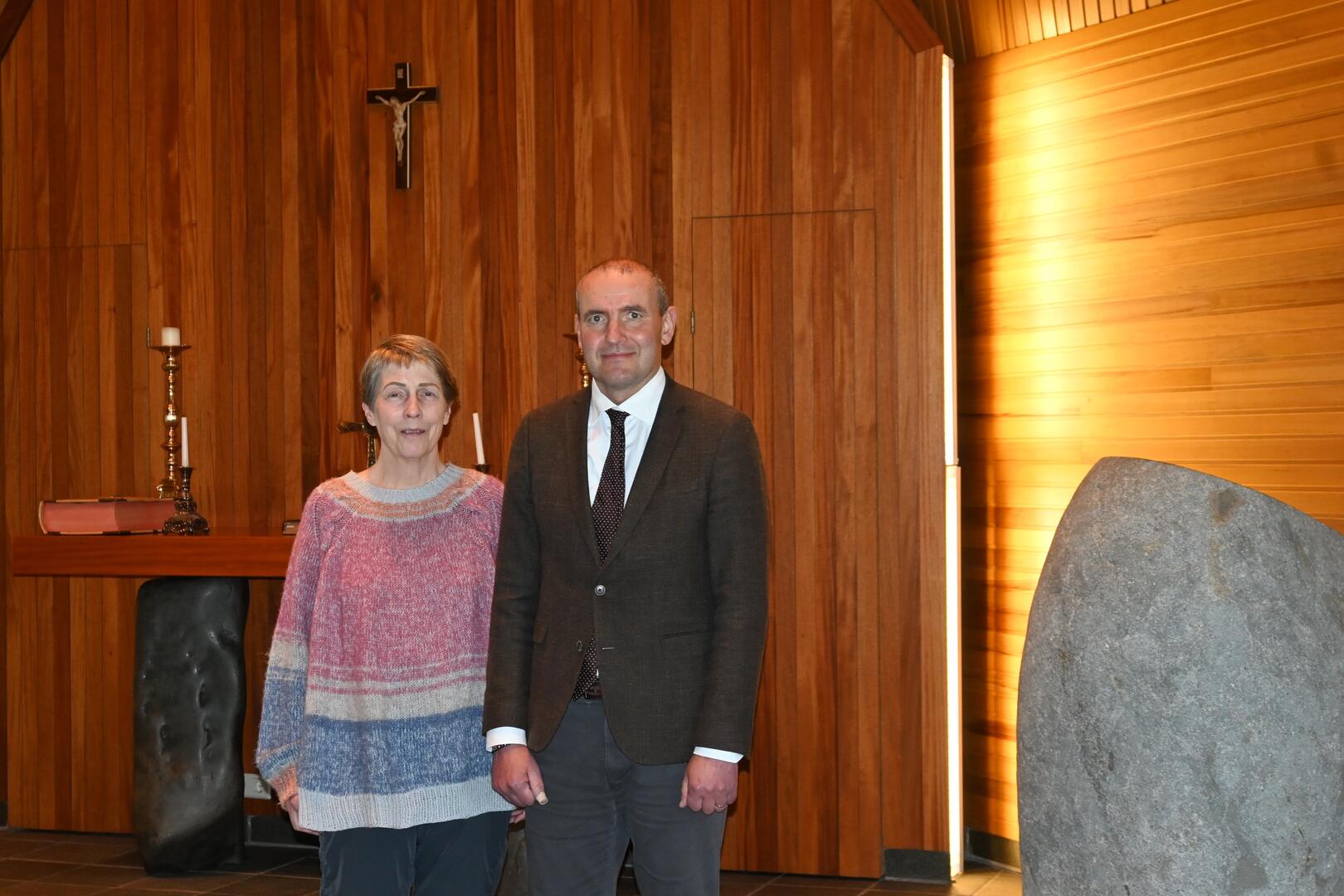 Oddný Þórðardóttir, formaður sóknarnefnar, segir forseta frá nýju kirkjunni í Árnessókn. Ljósmynd/Una Sighvatsdóttir