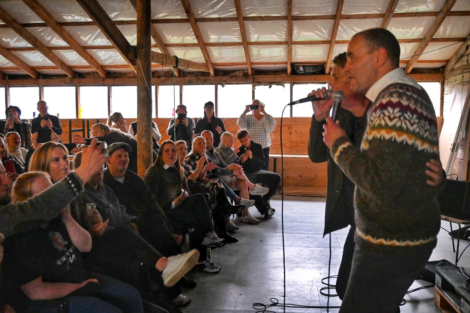 Forseti á tónleikum Helga Björnssonar í gamla fjárhúsinu á Valgeirsstöðum í Norðurfirði. Ljósmynd/Una Sighvatsdóttir
