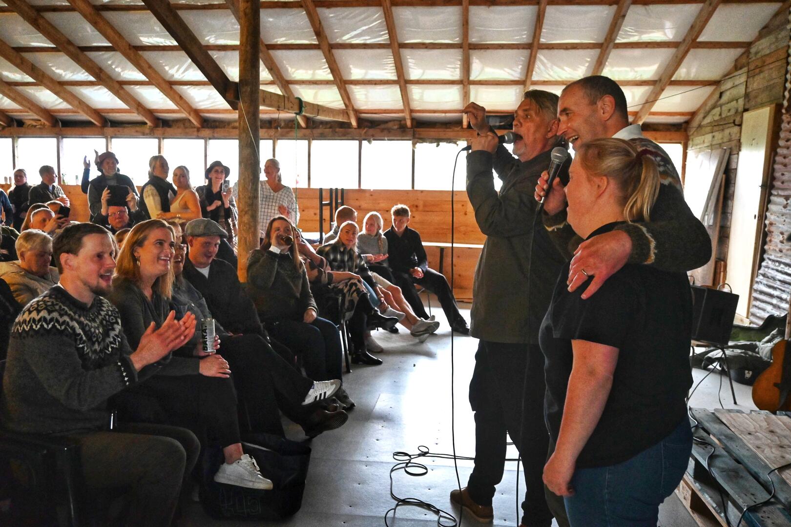 Forseti tekur lagið á tónleikum Helga Björnssonar í gamla fjárhúsinu á Valgeirsstöðum í Norðurfirði. Ljósmynd/Una Sighvatsdóttir