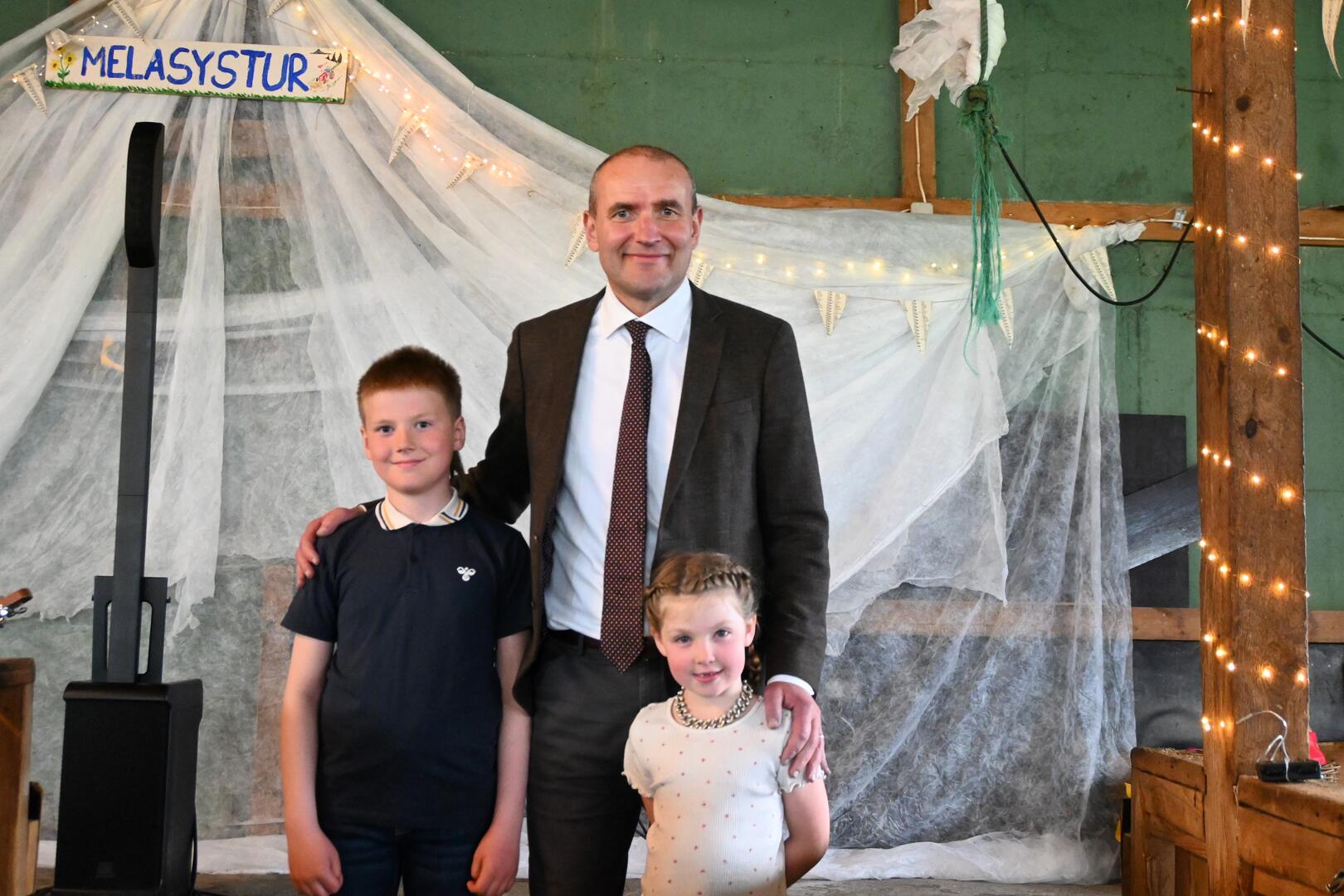 Forseti ásamt barnabörnum bændahjónanna á Melum í Trékyllisvík. Ljósmynd/Una Sighvatsdóttir