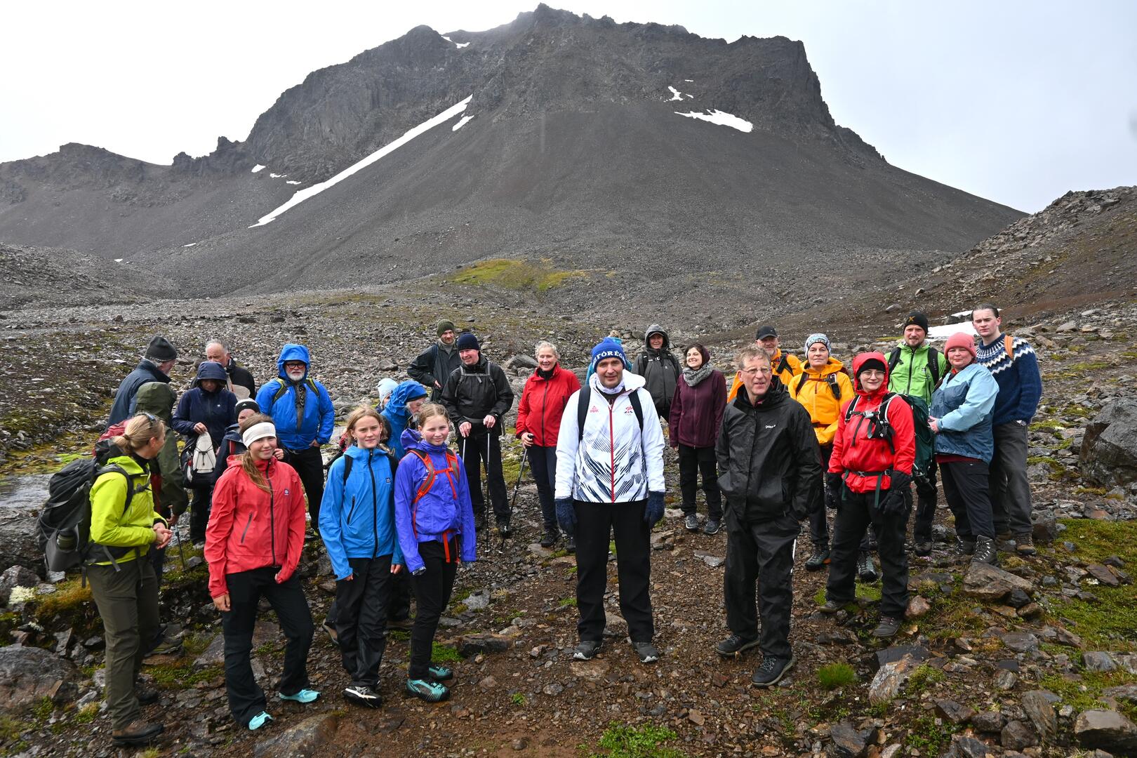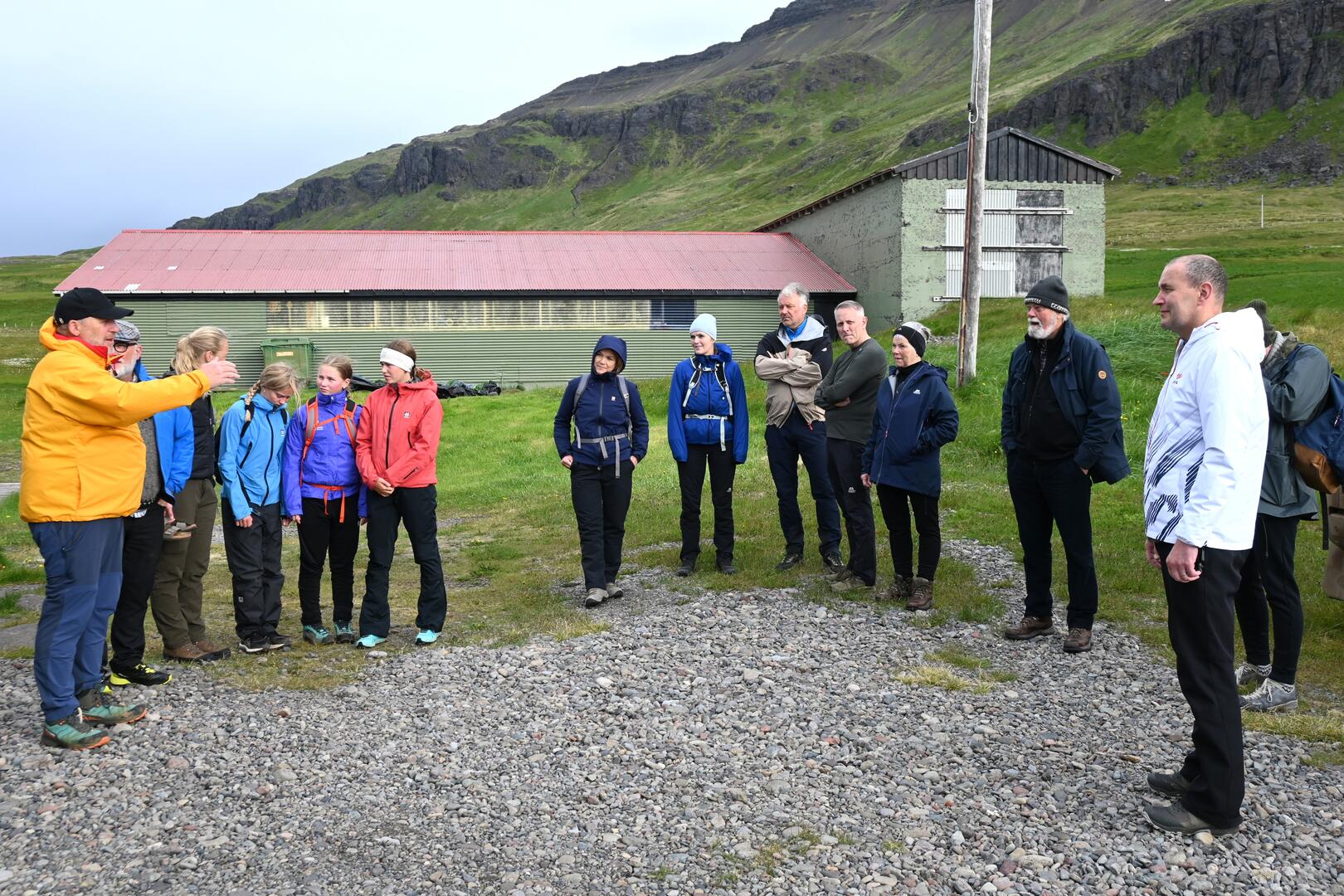 Forseti ásamt gönguhópi Ferðafélags Íslands á hlaðinu við skála ferðafélagsin í Norðurfirði. Ljósmynd/Una Sighvatsdóttir