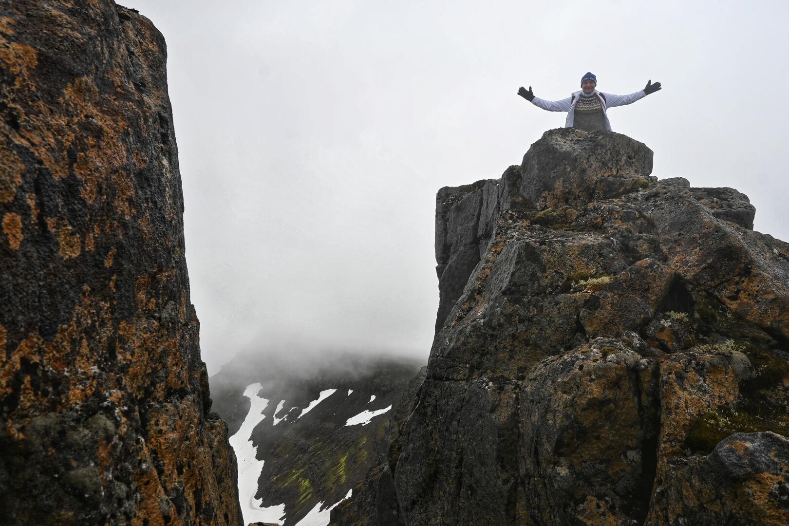 Forseti á toppi Glissu á mörkum Reykjarfjarðar og Ingólfsfjarðar. Höfðu leiðsögumenn FÍ á orði að þar héti eftirleiðis Guðnakleif. Ljósmynd/Una Sighvatsdóttir