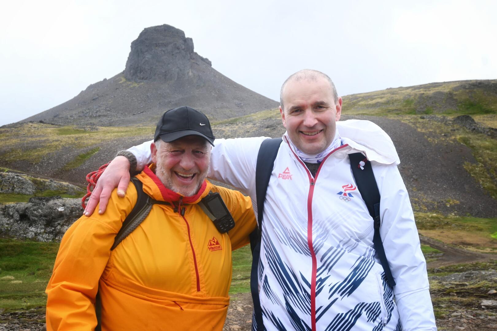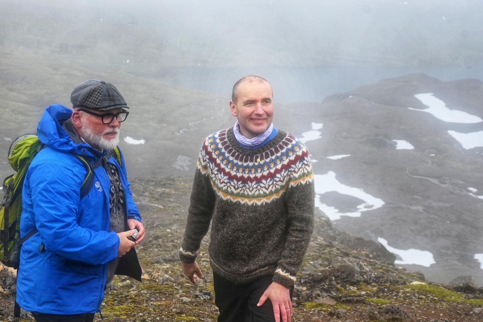 Reynir Traustason, skálavörður í Norðurfirði og fararstjóri Ferðafélags Íslands, ásamt forseta. Ljósmynd/Una Sighvatsdóttir.