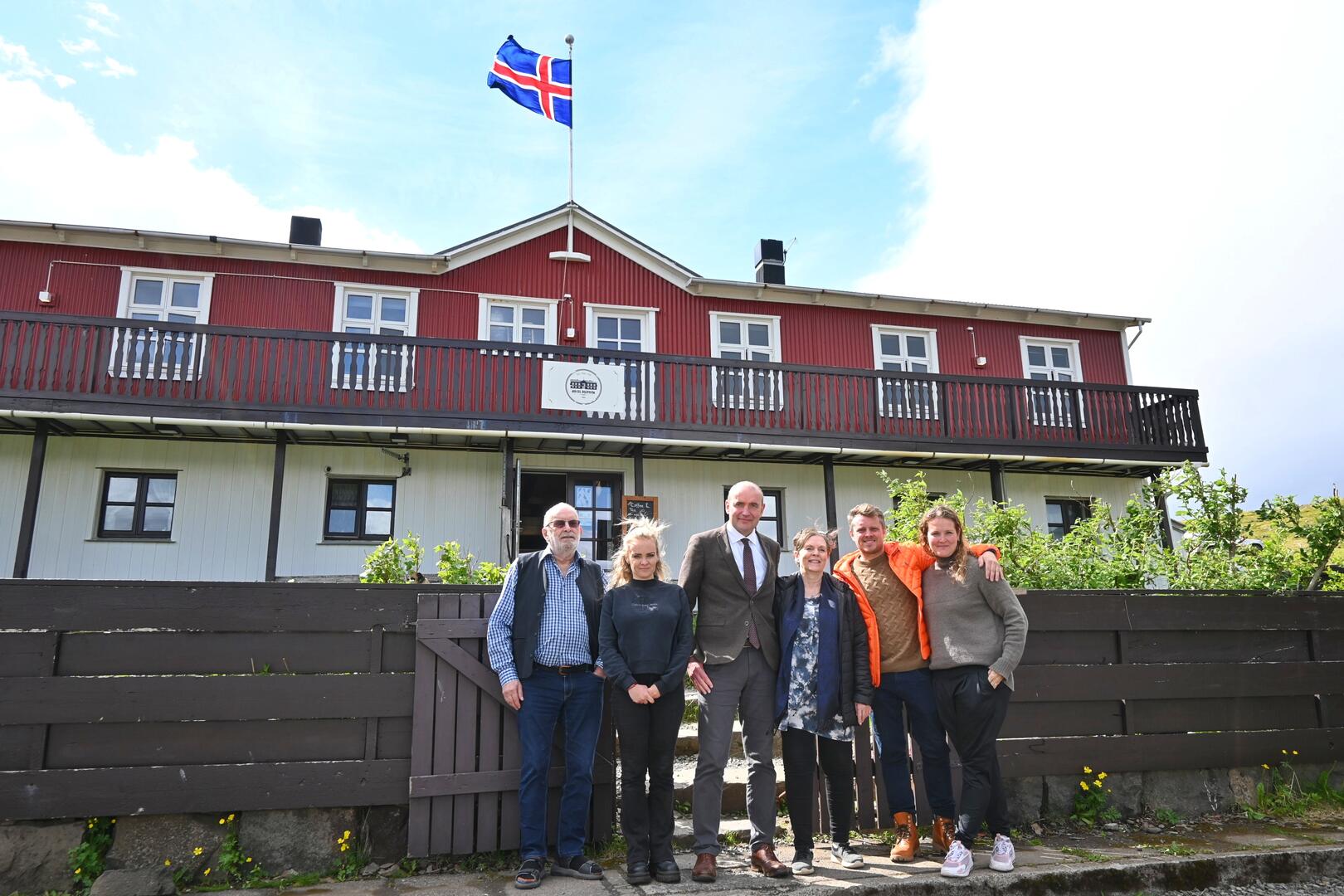 Forseti ásamt eigendum og rekstraraðilum Hótel Djúpavíkur. Ljósmynd/Una Sighvatsdóttir