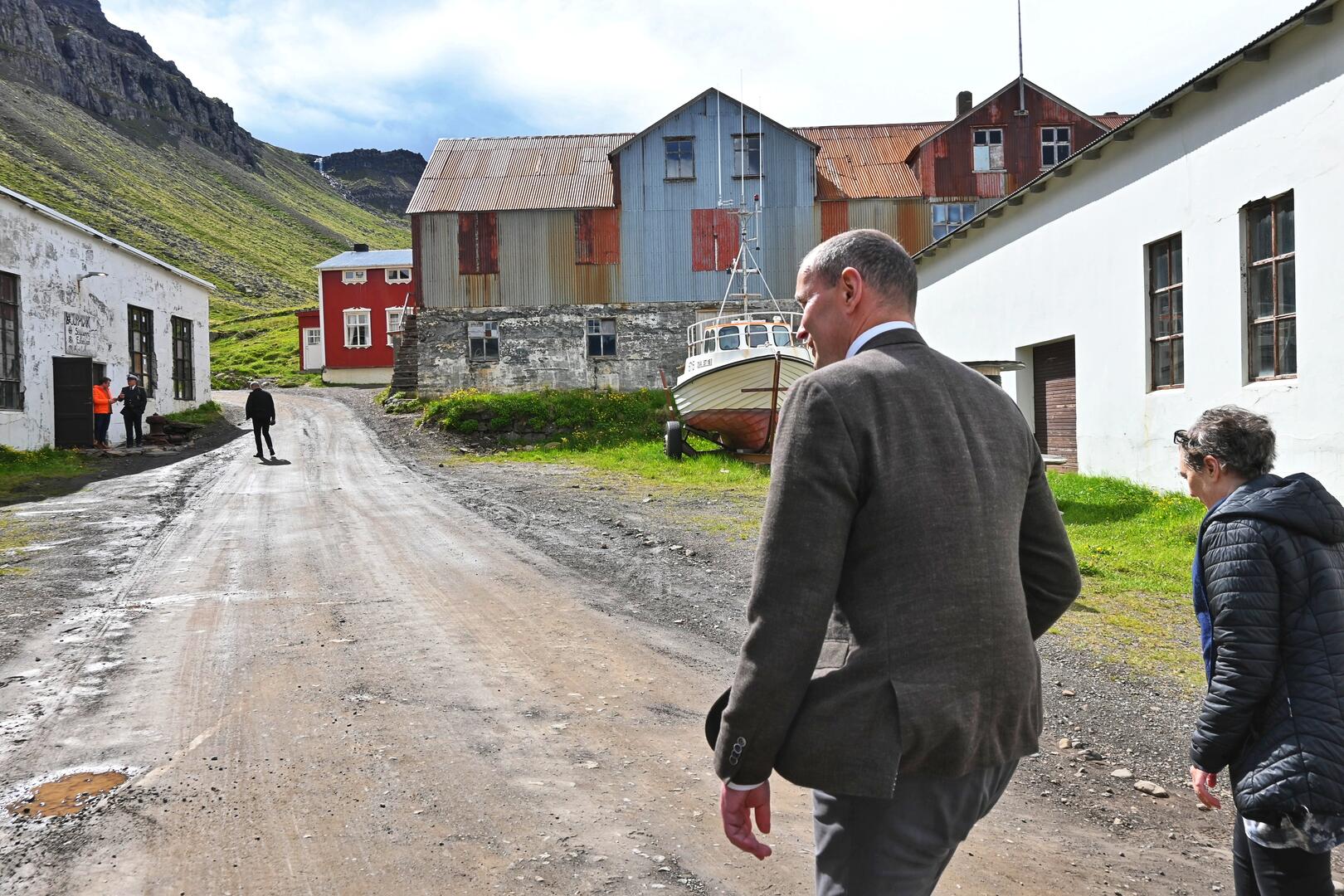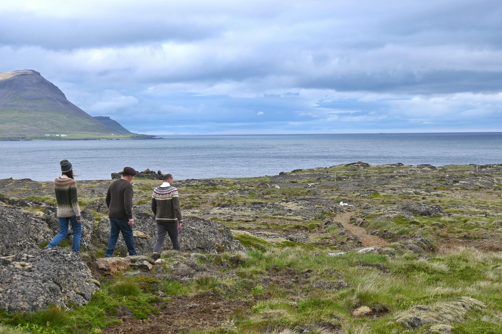 Gengið um Djúpavík með Evu Sigurbjörnsdóttur, oddvita hreppsnefndar Árneshrepps og eiganda Hótels Djúpavíkur. Ljósmynd/Una Sighvatsdóttir